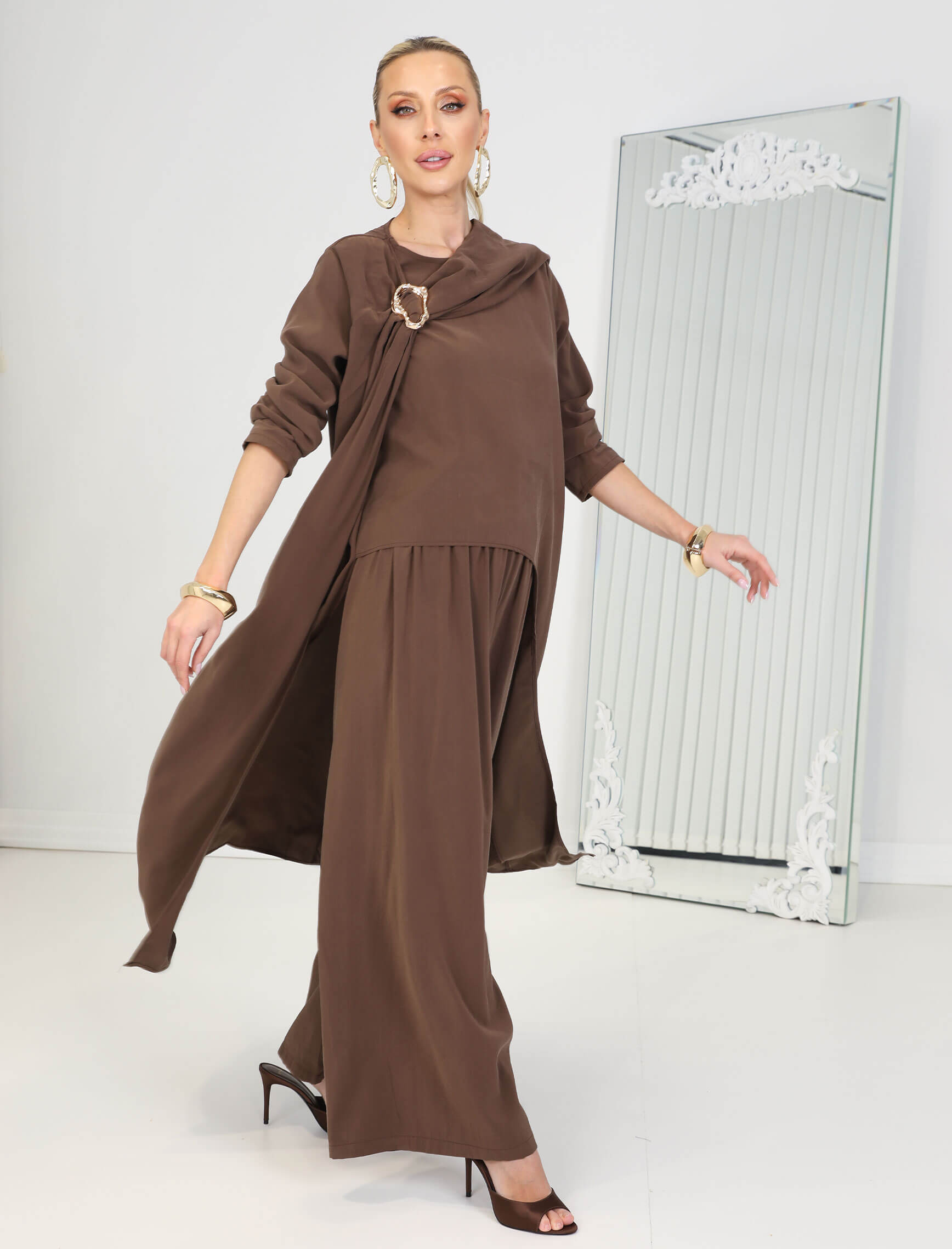 Kahverengi Gerarde Tokalı Takım