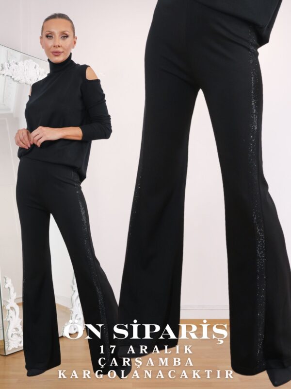 Siyah Yan Siyah Taşlı Sparkle Strech Pantolon