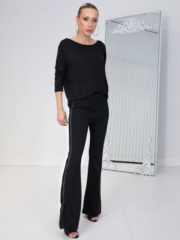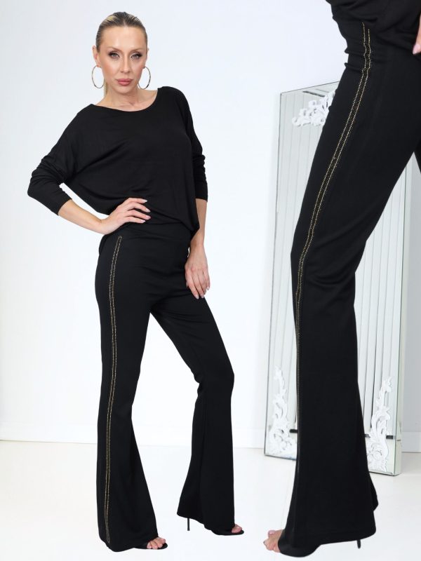 • Siyah Yan Gold Taş Sparkle Pantolon