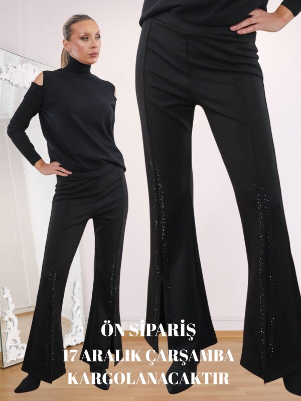 • Siyah Ön Taş Yırtmaçlı Sparkle Strech Pantolon