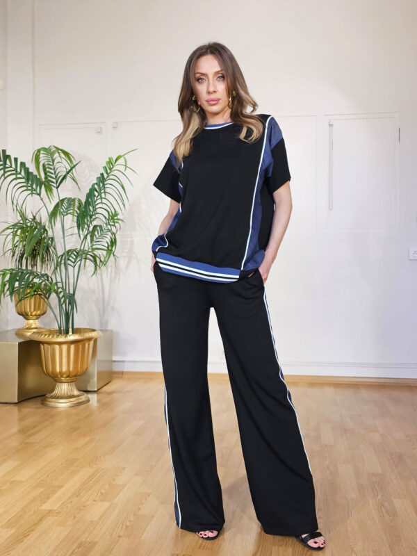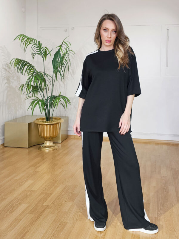 Siyah Çift Şerit Yırtmaç Modal Takım