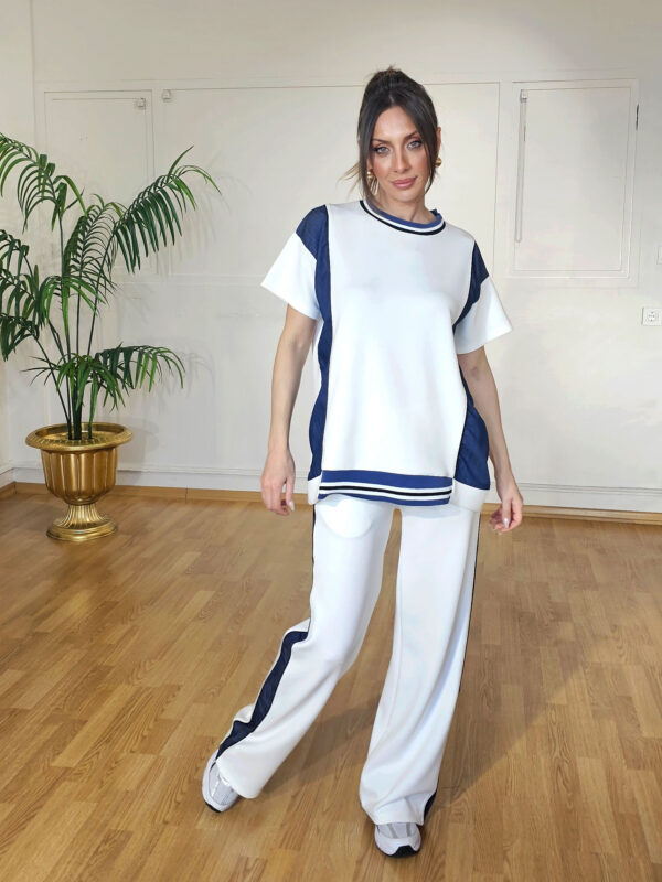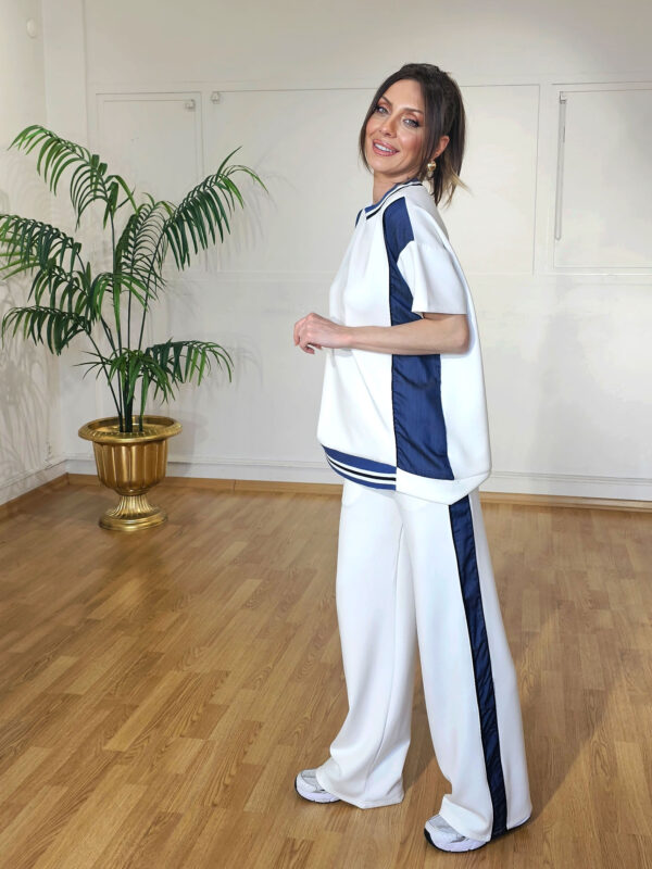Lacivert Çift Şerit Yırtmaç Modal Takım