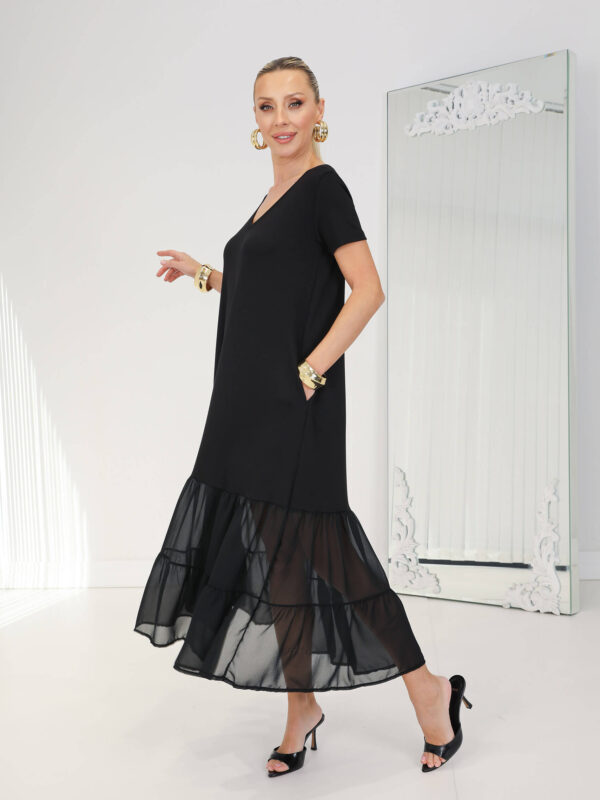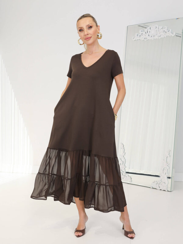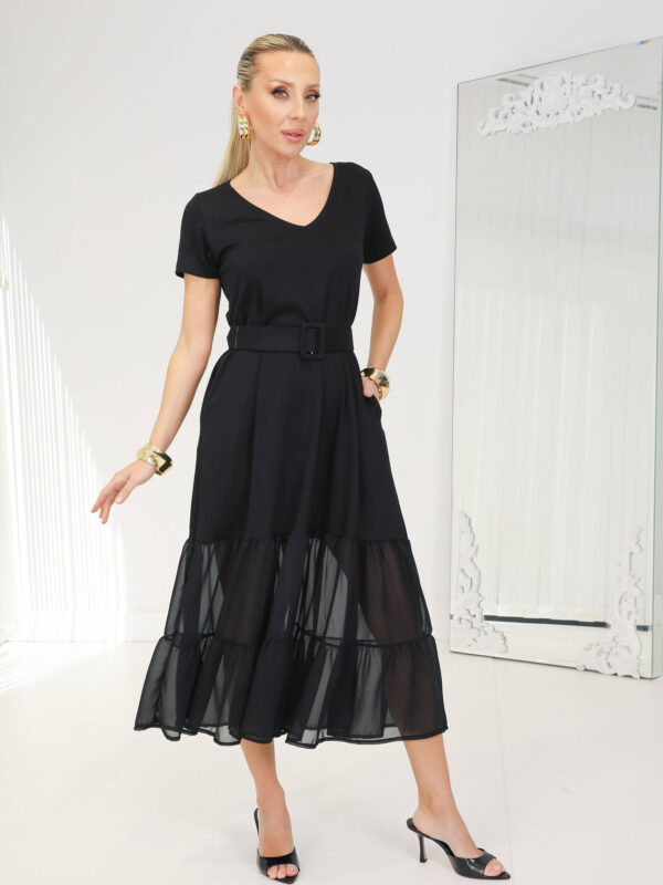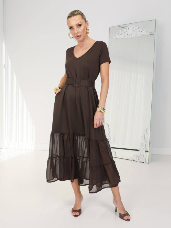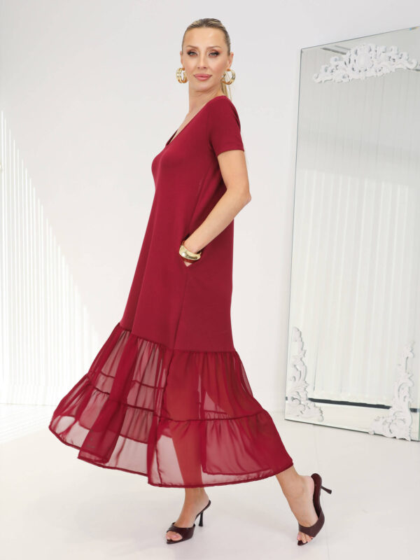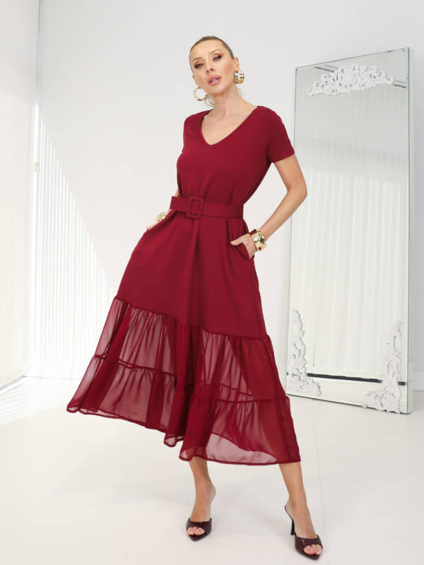 • Koyu Kırmızı Eteği Şifon Nero Elbise