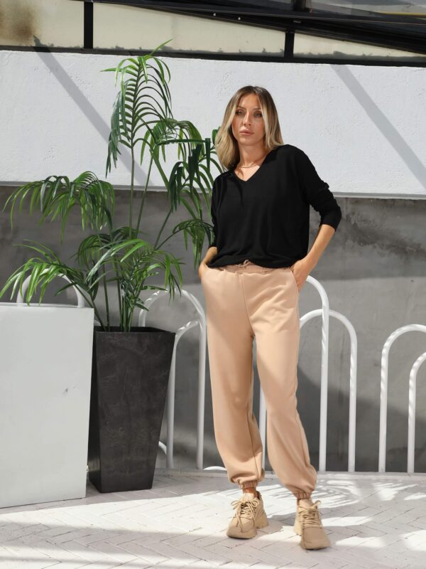 Ekru Siyah Saten Şerit Palazzo Pantolon