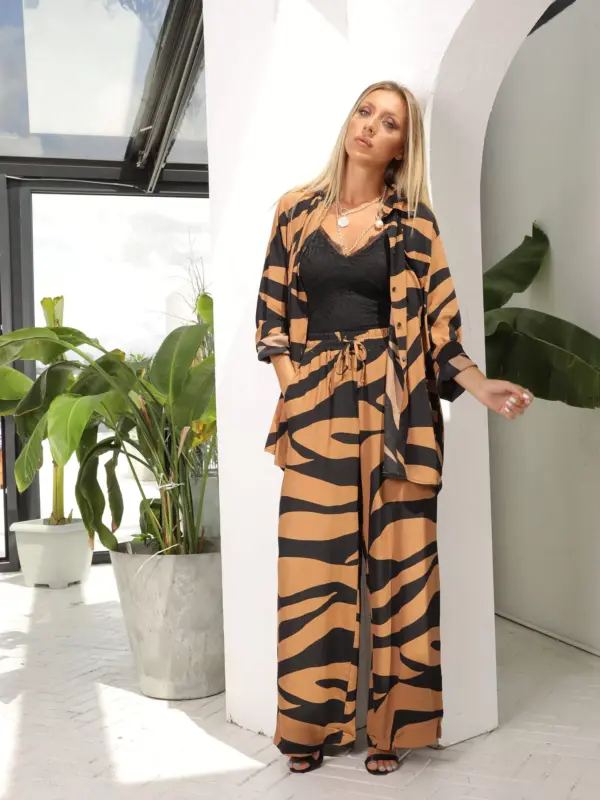 Bej Fitilli Likra Tayt Yan Yırtmaç Pantolon
