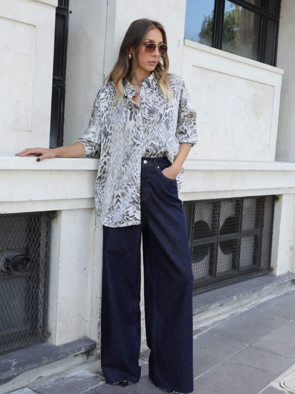 Yan Düğme Ekru Siyah Çizgi Triko – OUTLET
