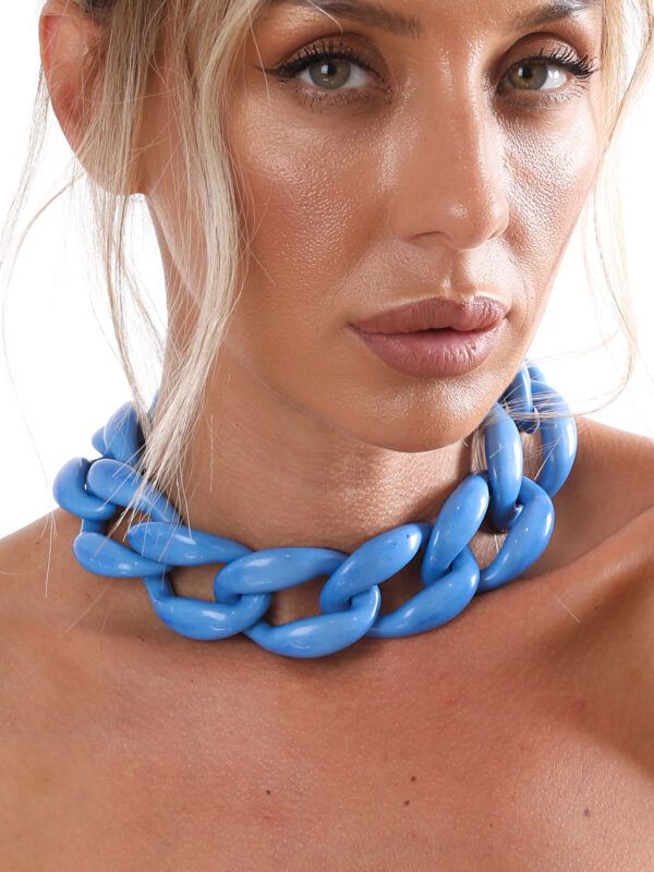 Saksrengi Mavi Dolgulu Zincir Kolye