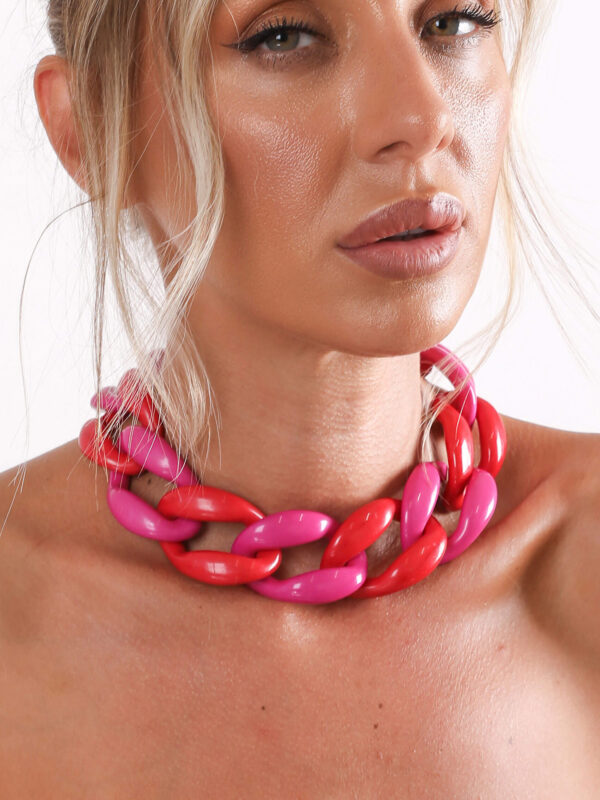 • Mercan Fuşya Dolgulu Zincir Kolye