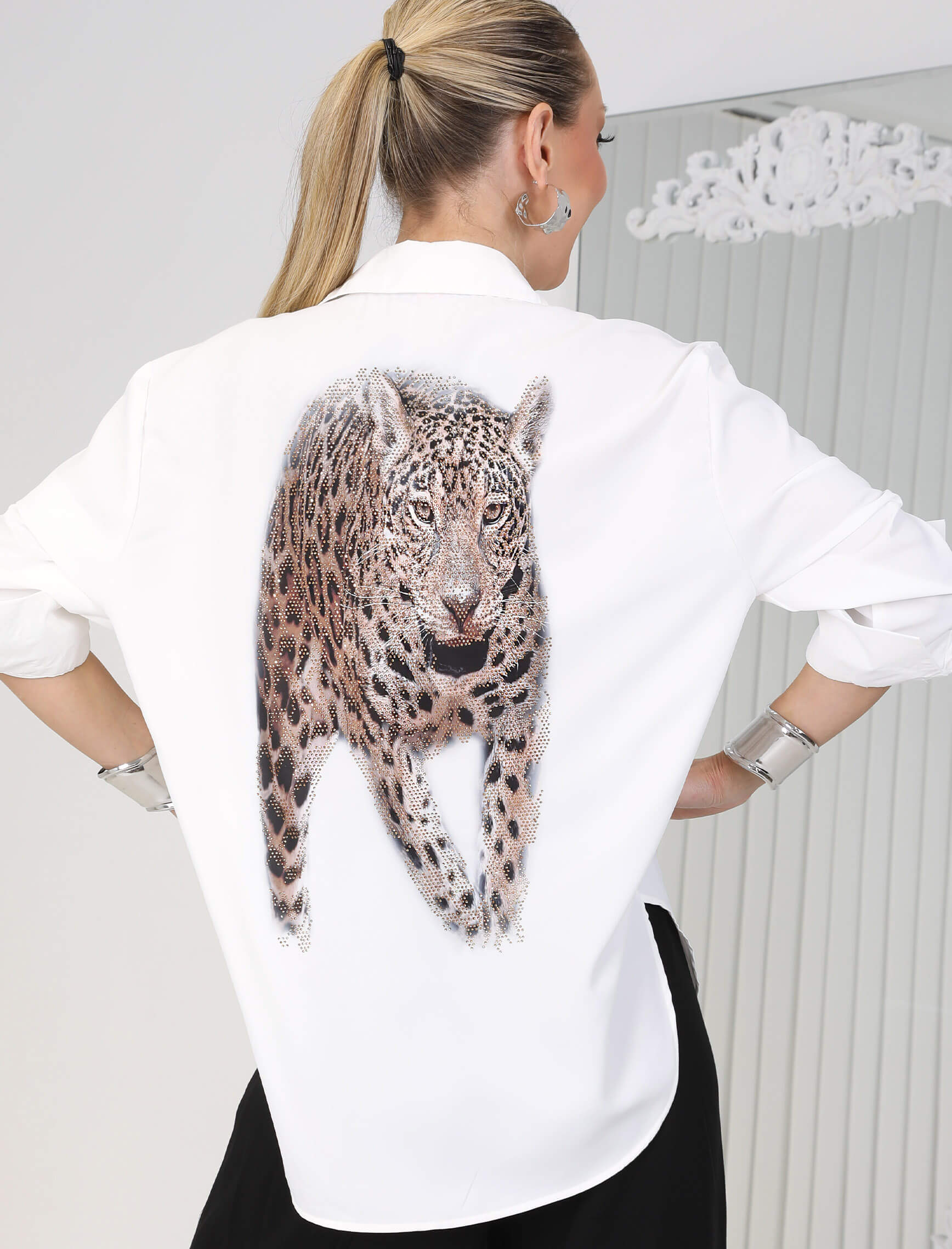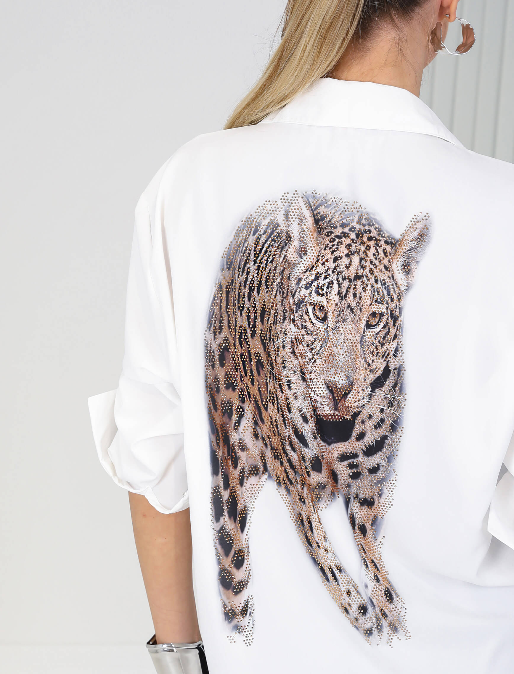 Beyaz Leopardesen Taşlı Arancia Gömlek