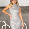 Beyaz Siyah Taş Düğme Fisto Detay Tierro Elbise