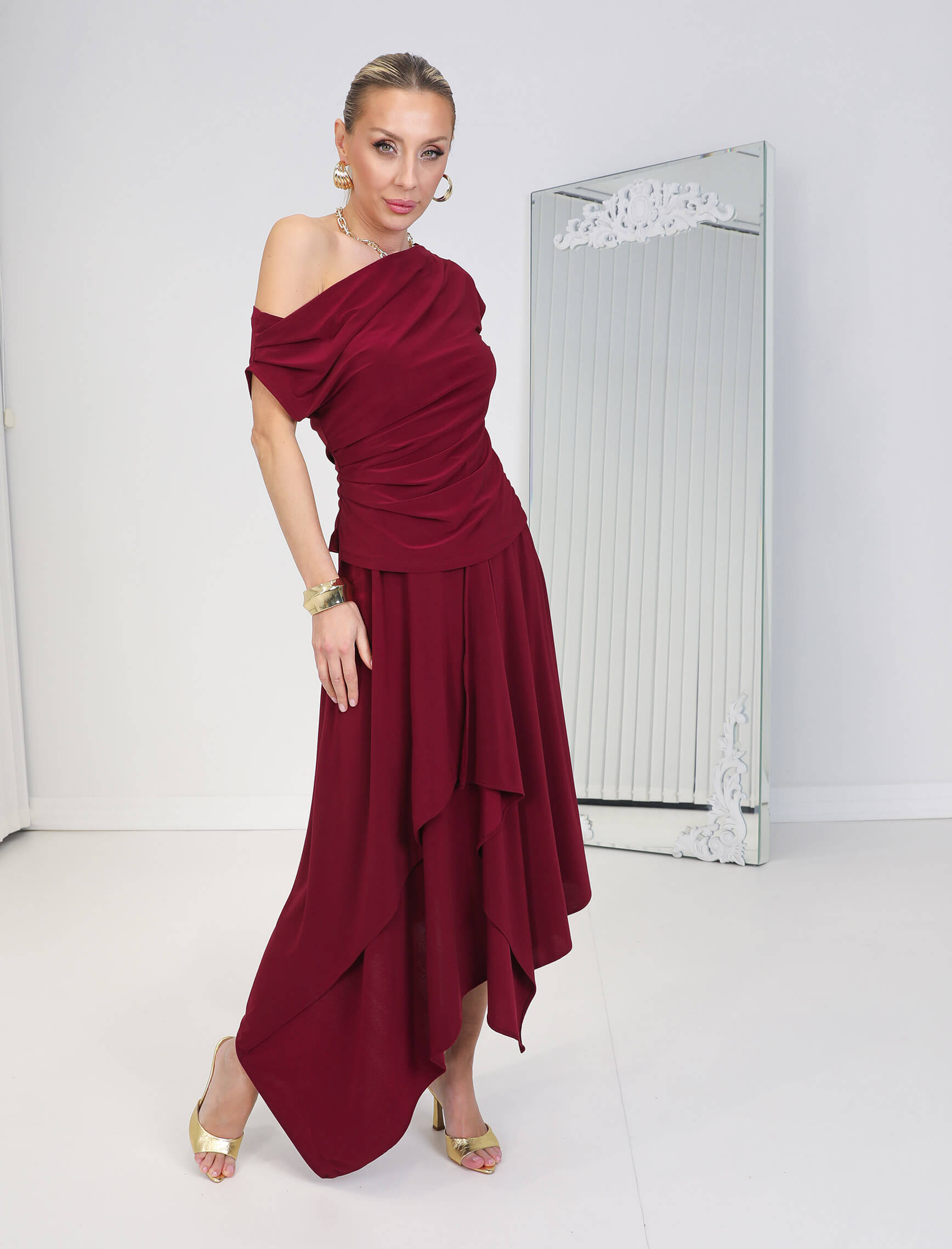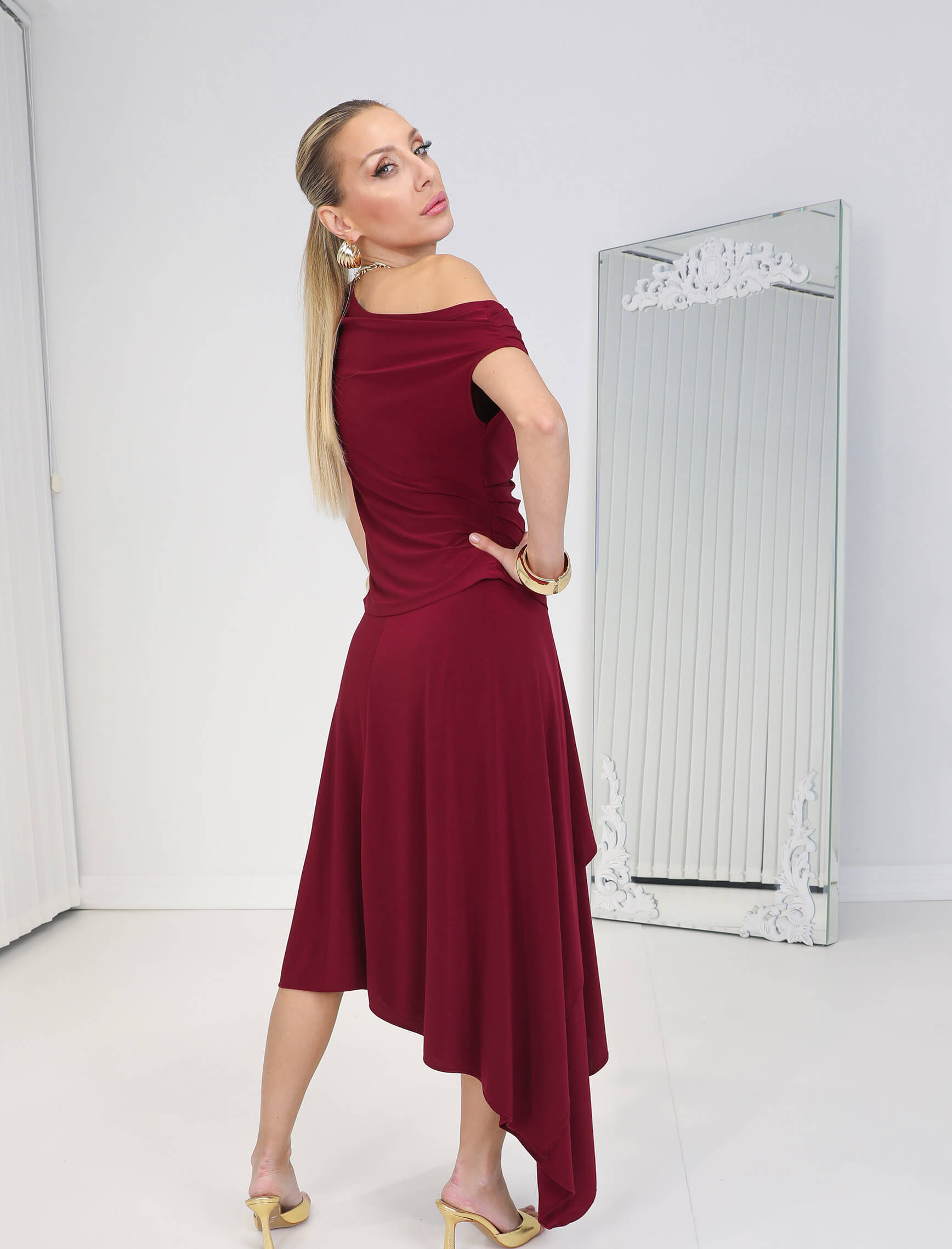 Bordo Asimetrik Etekli Volare Takım