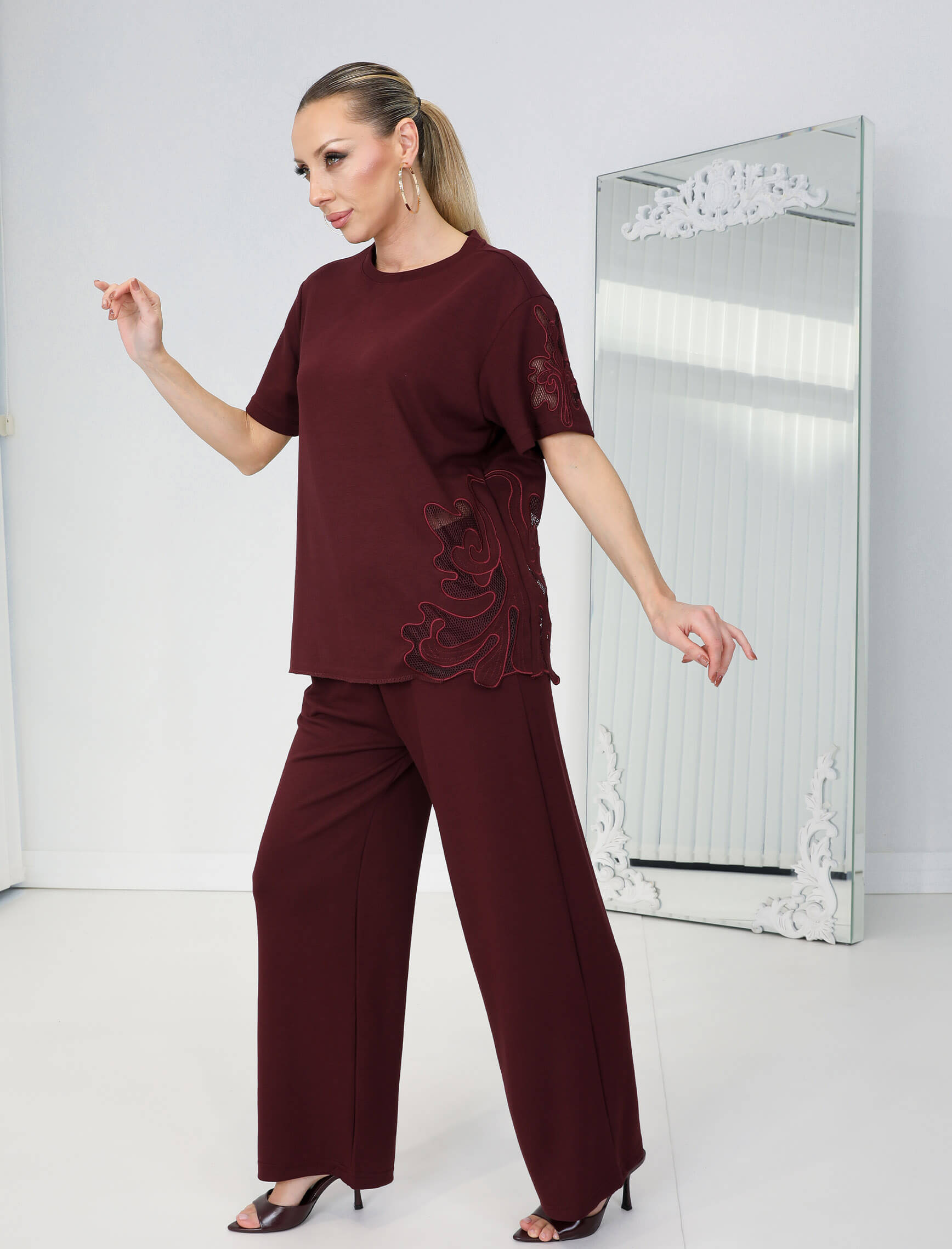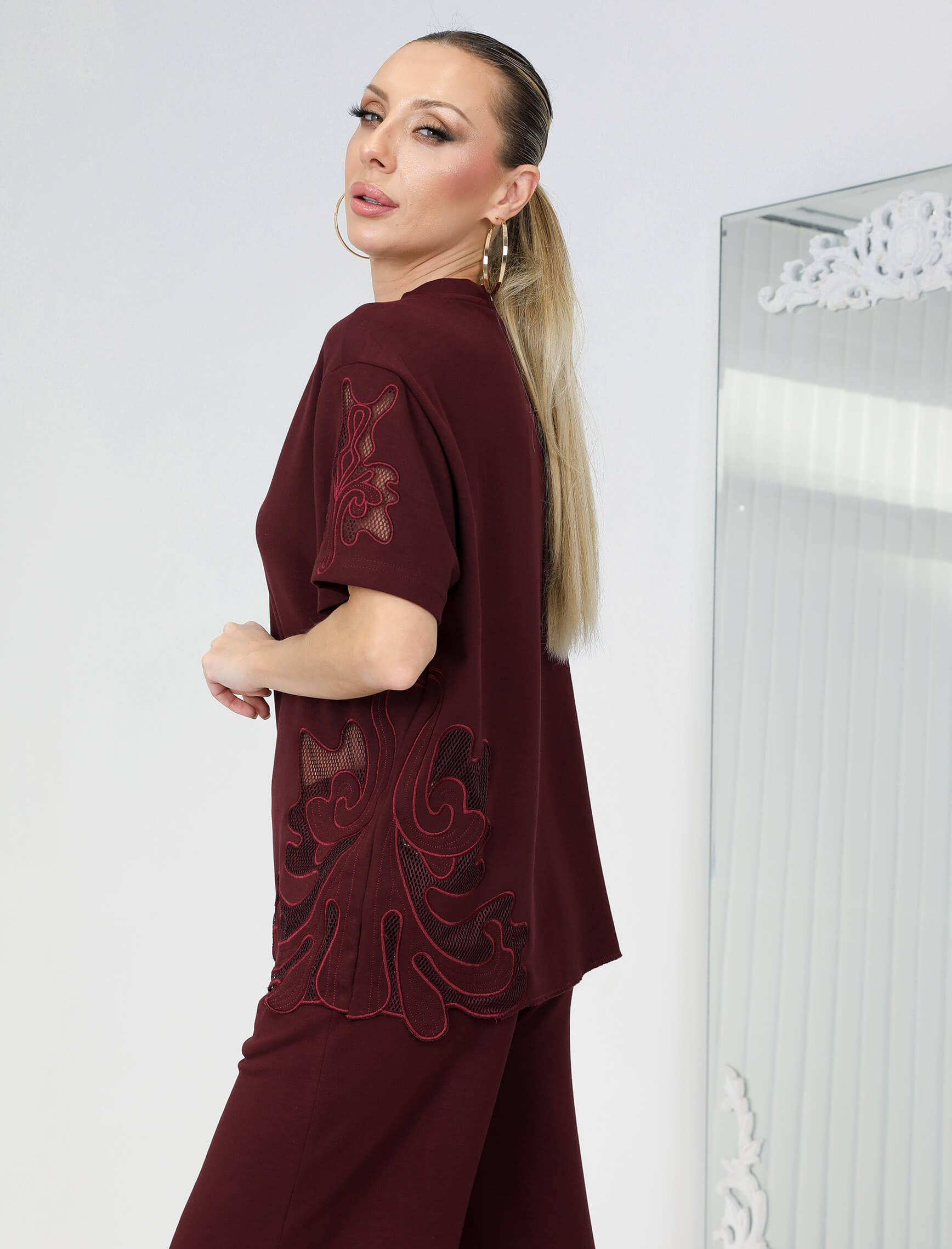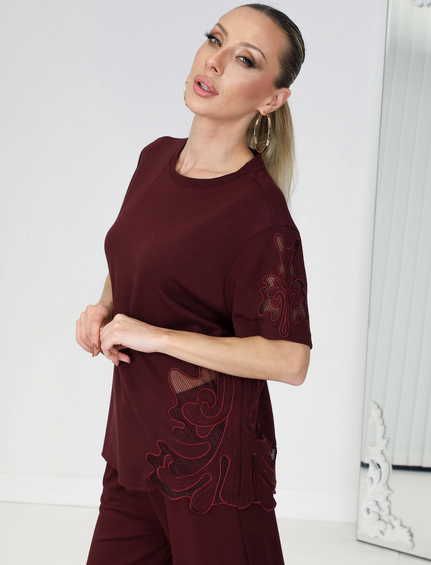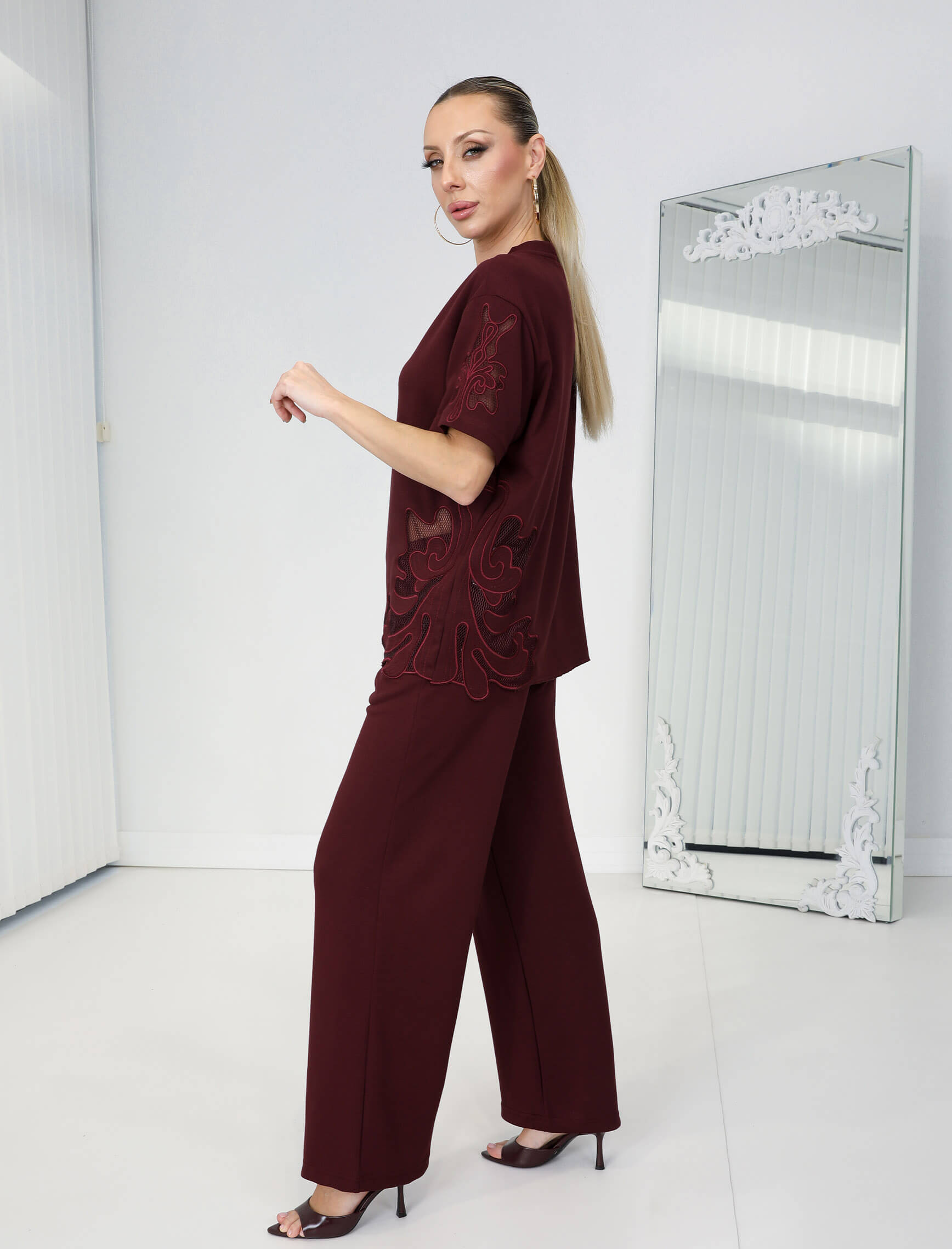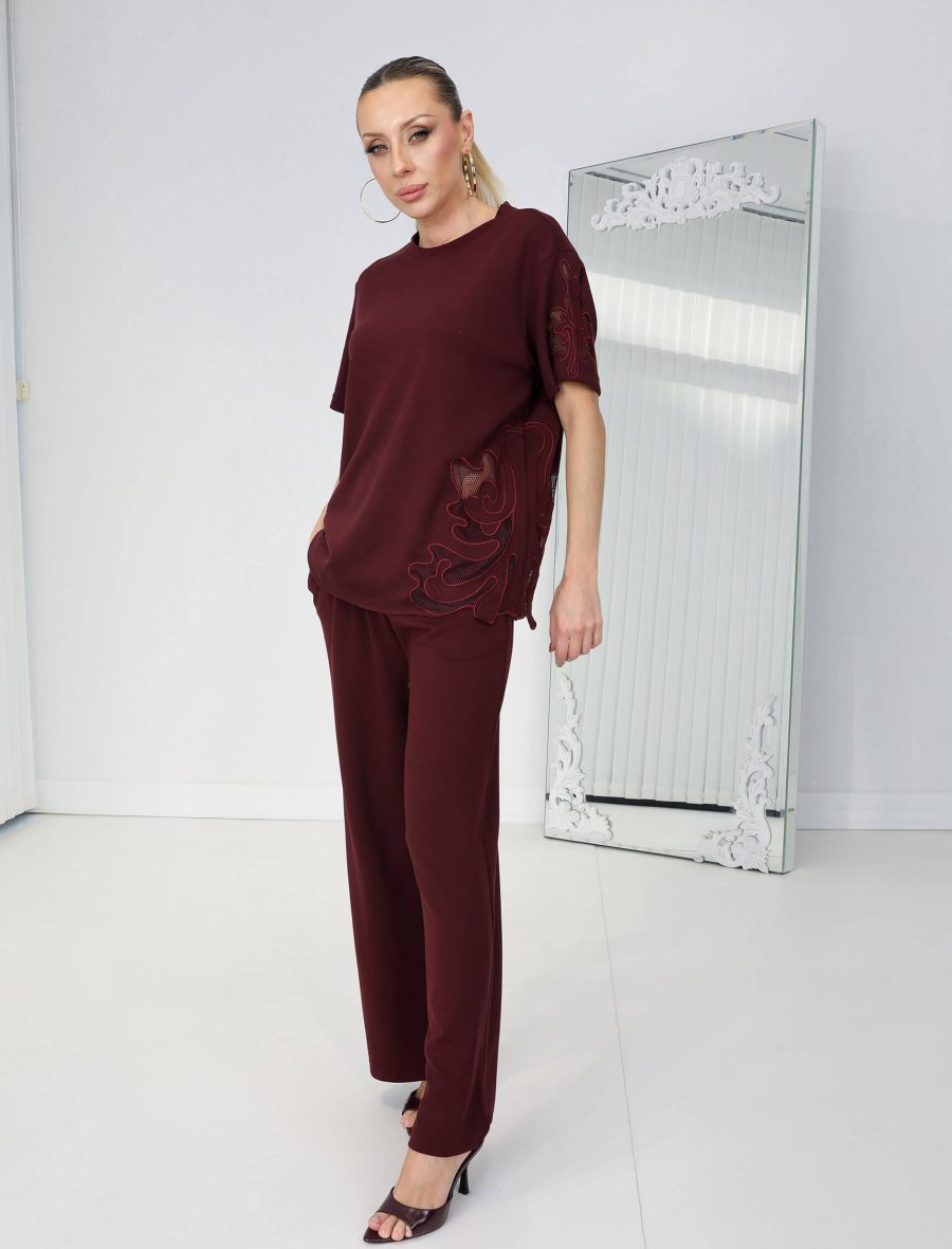 Bordo Geramo Nakışlı Takım