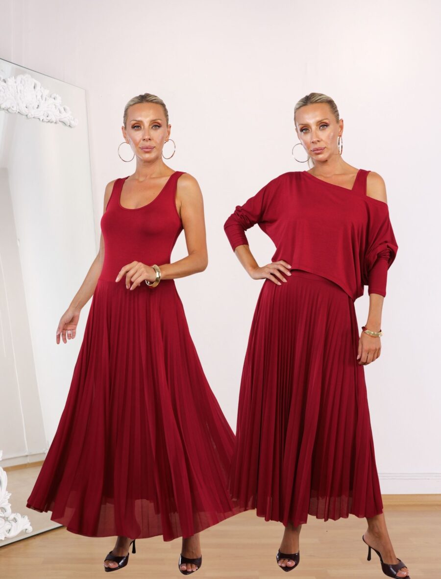 Koyu Kırmızı İkili Rua Elbise