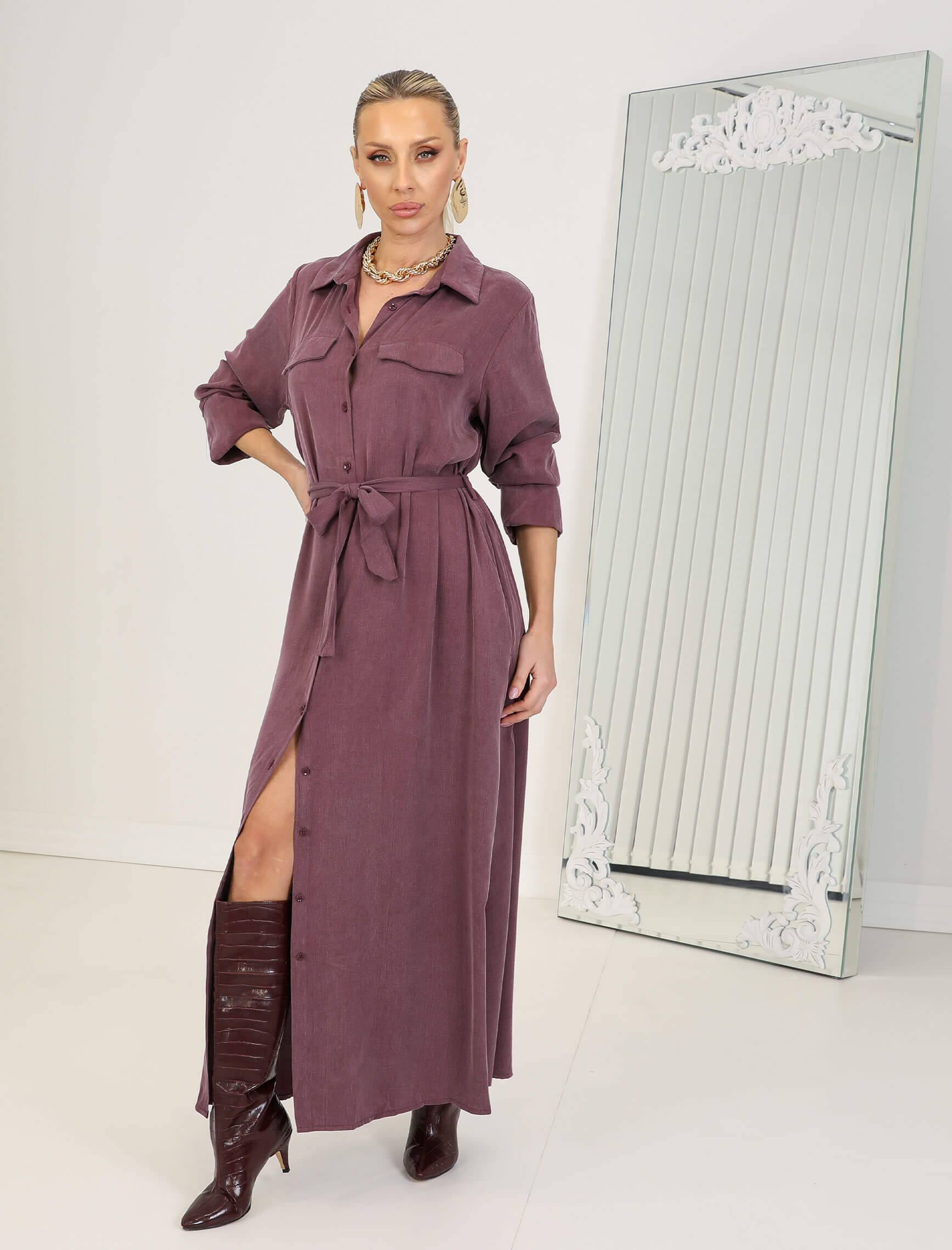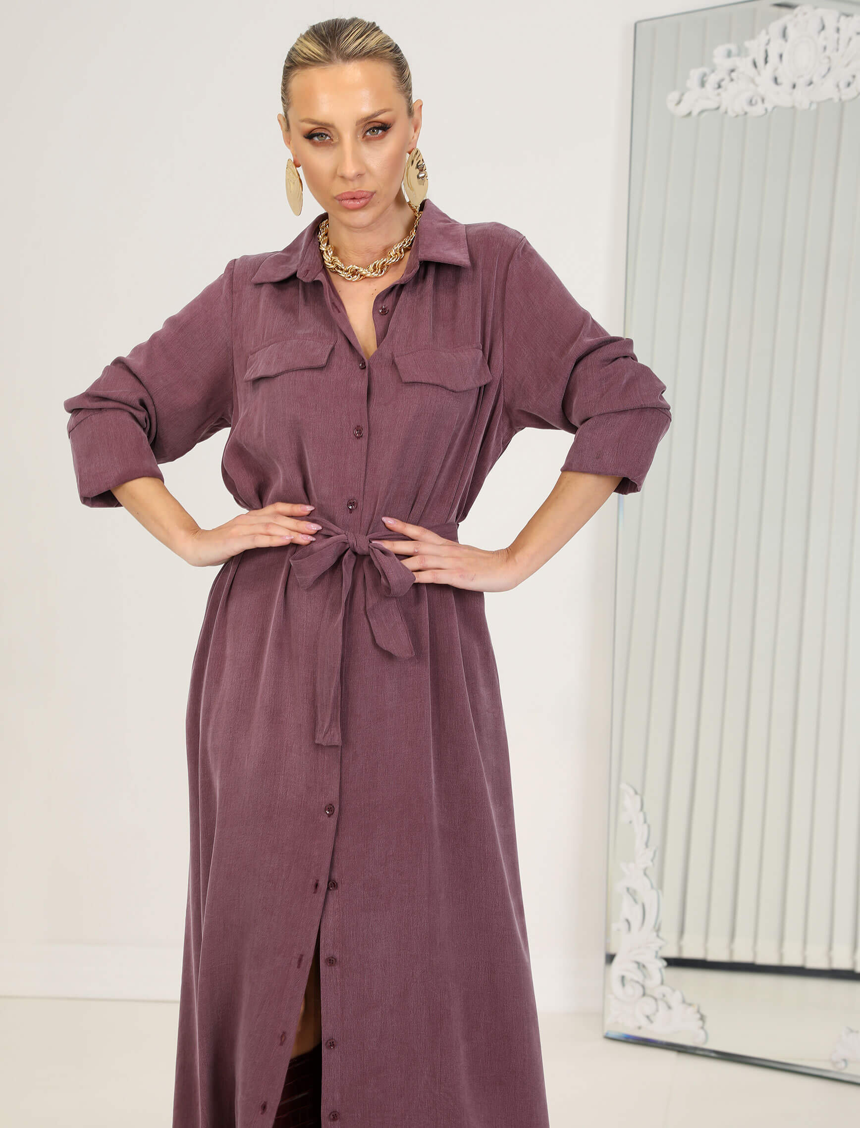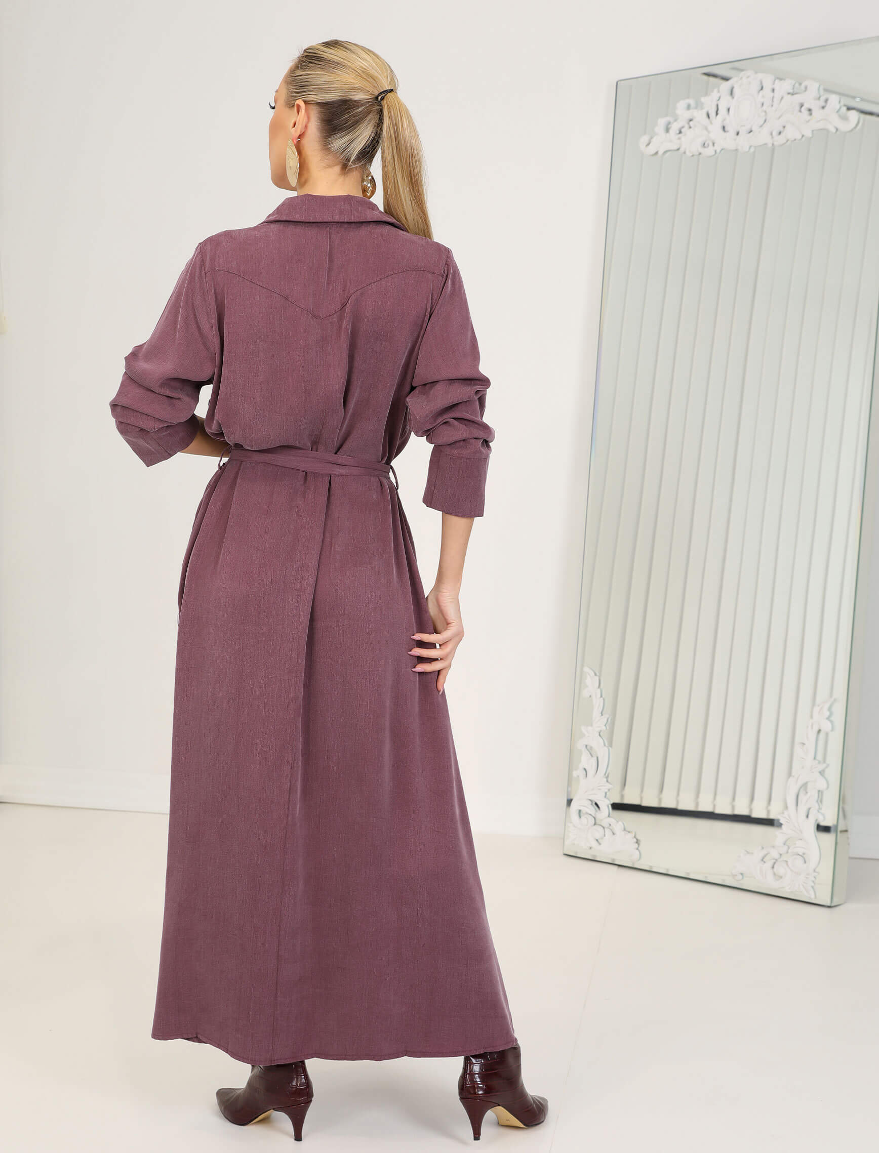 • Kahve Ortensa Gömlek Elbise