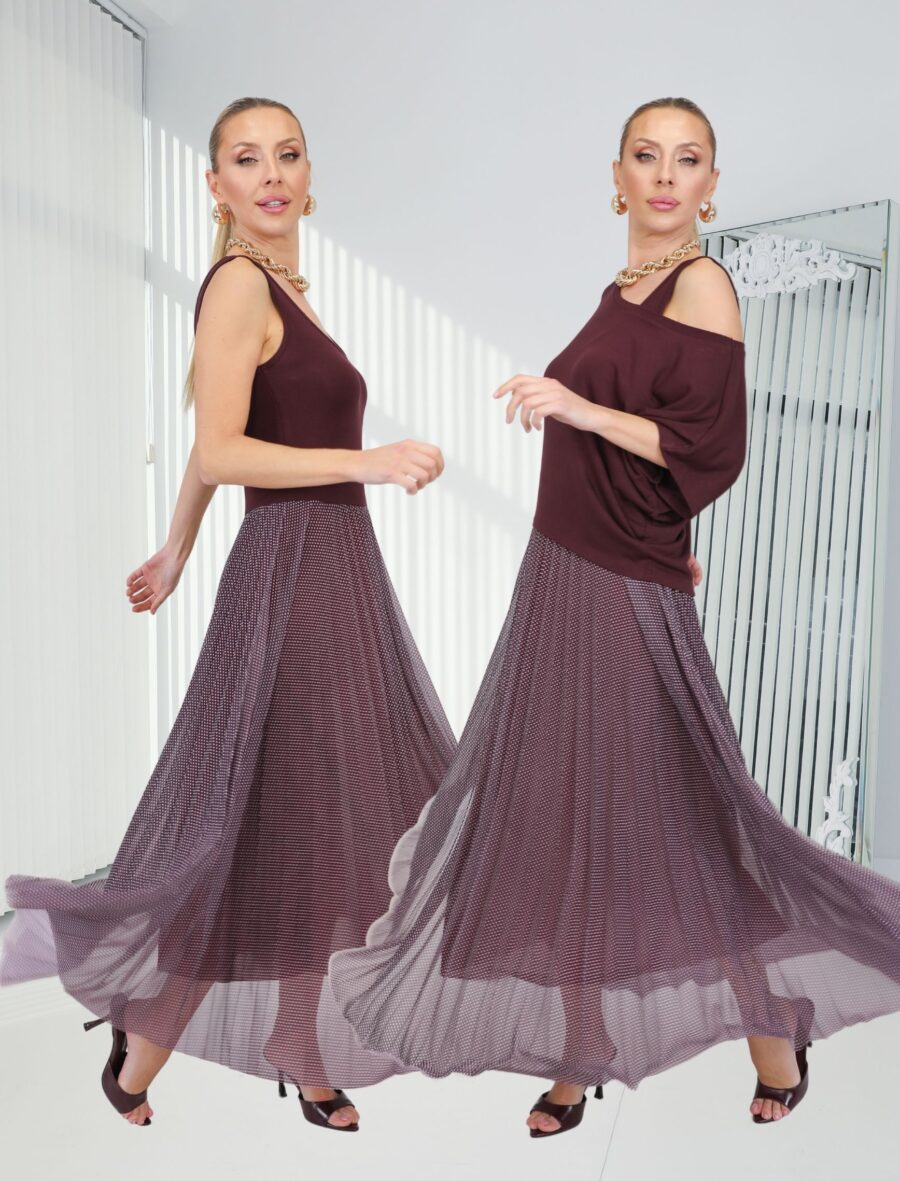 • Badem Kahve Puantiye İkili Lunares Elbise
