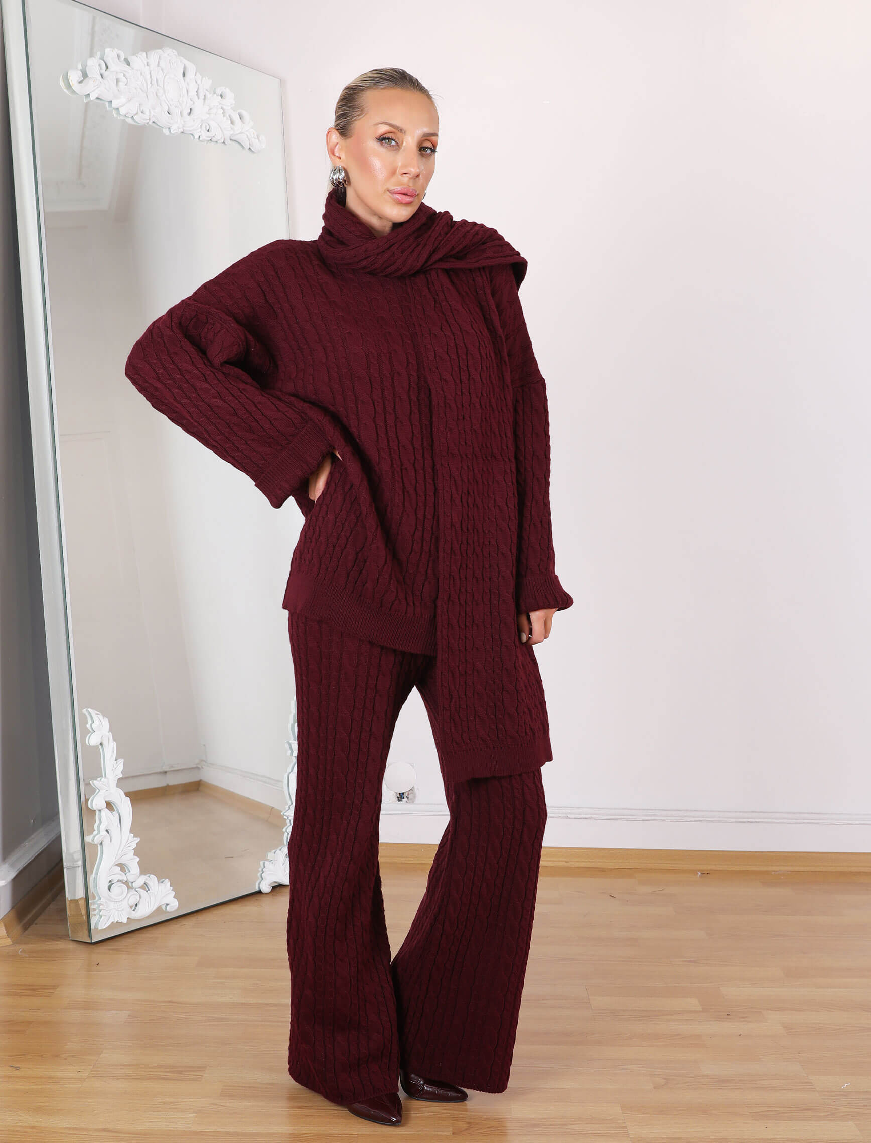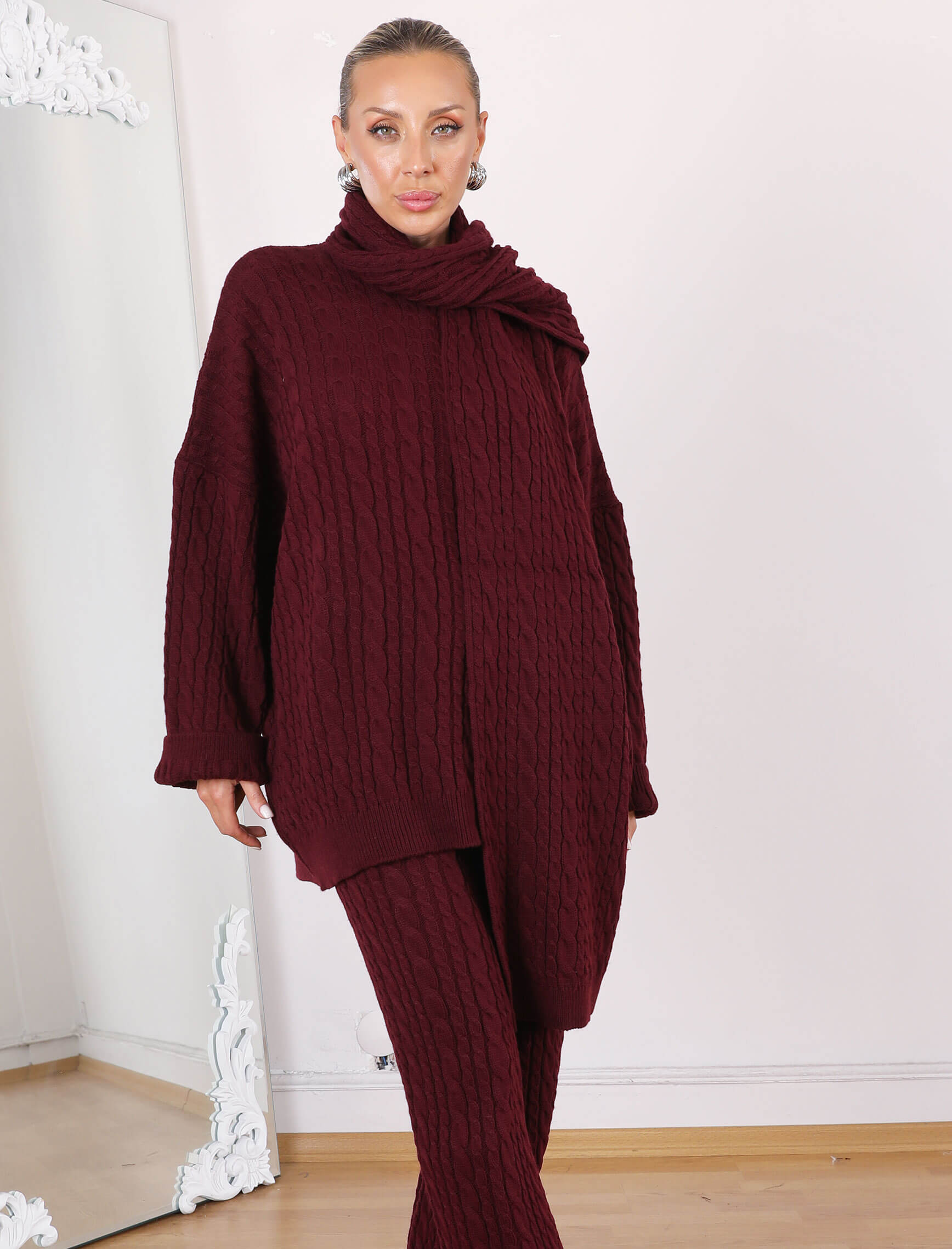 Bordo Saç Örgü Atkılı Takım – OUTLET