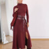 Bordo Uzun Kol Belinda Elbise