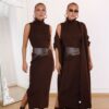 • Kahve Yuka Elbise-Hırka Takım
