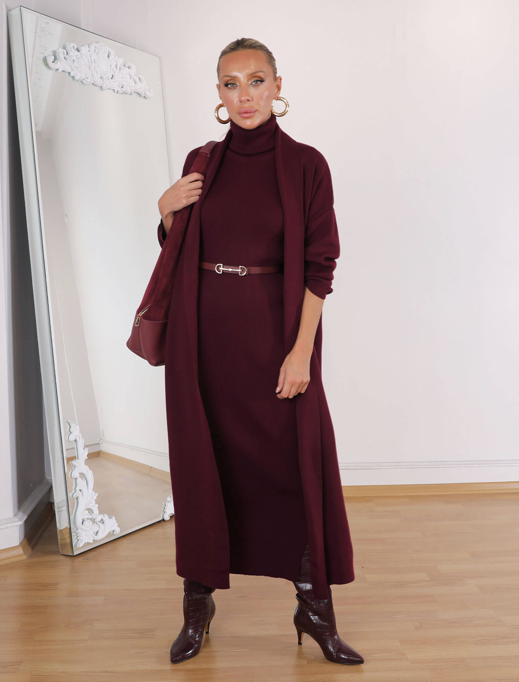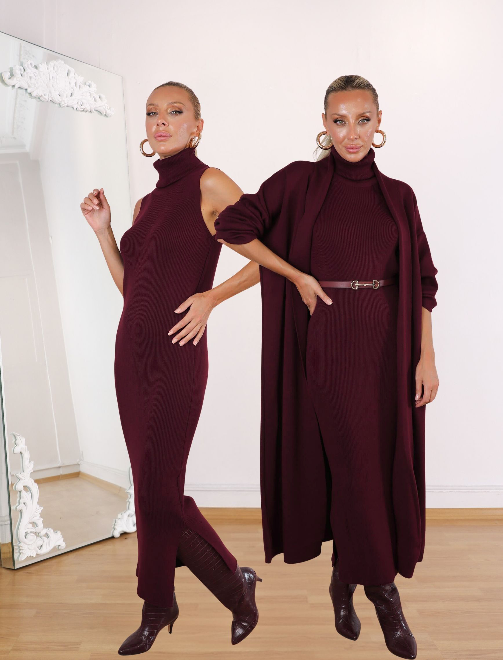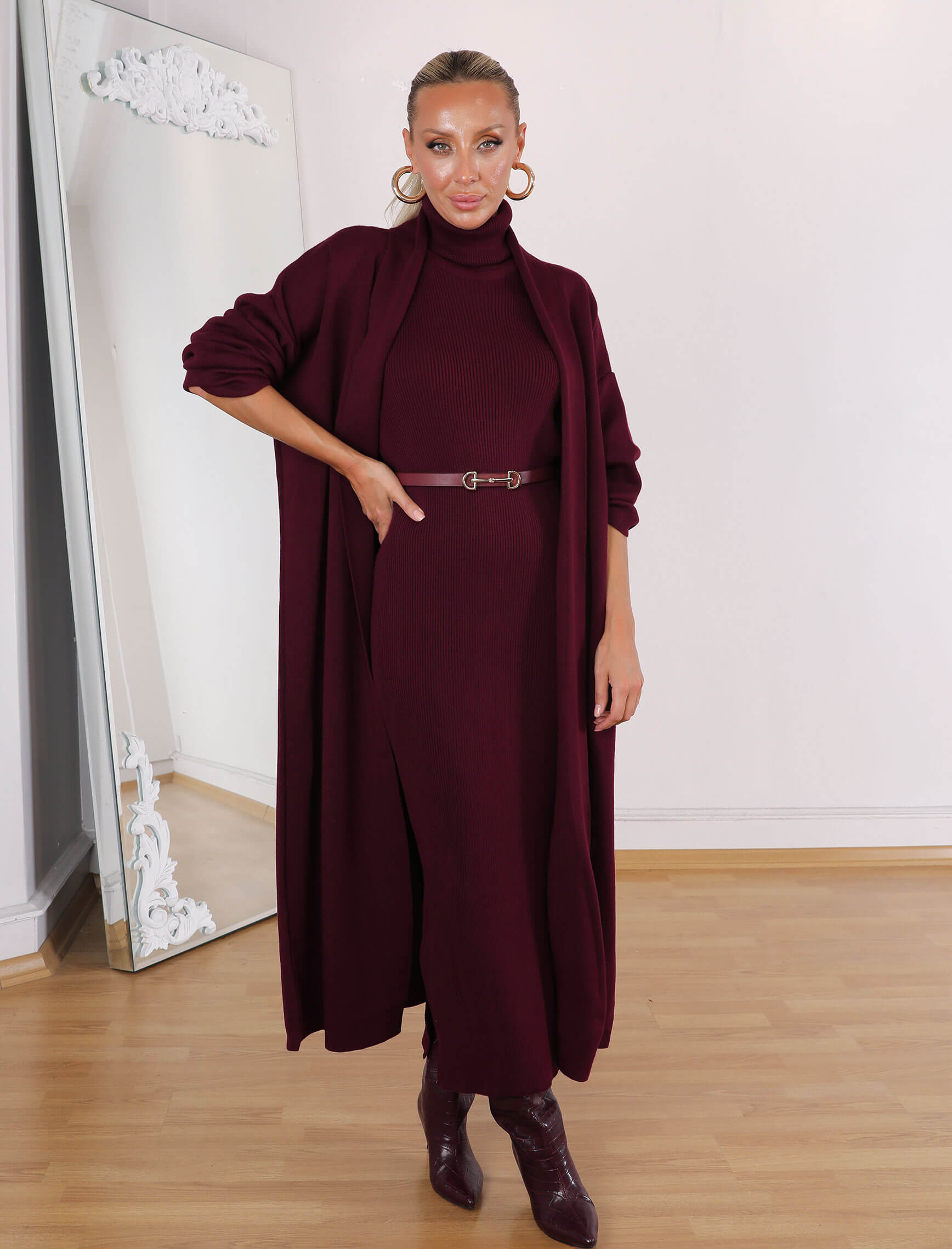 • Bordo Yuka Elbise-Hırka Takım