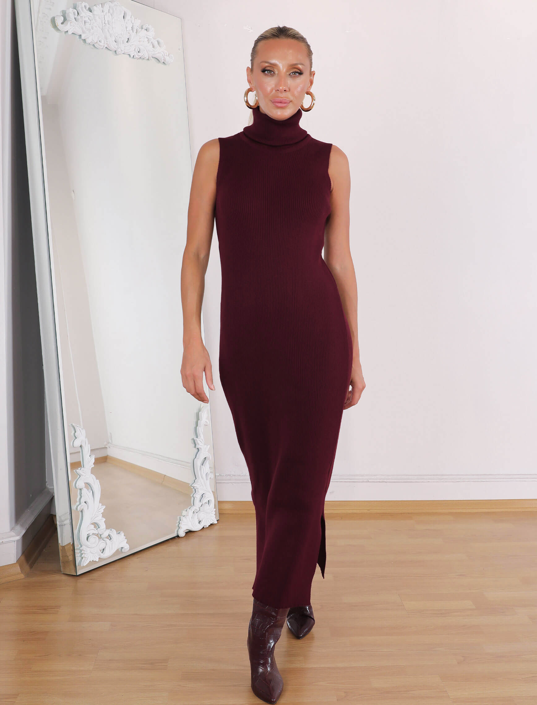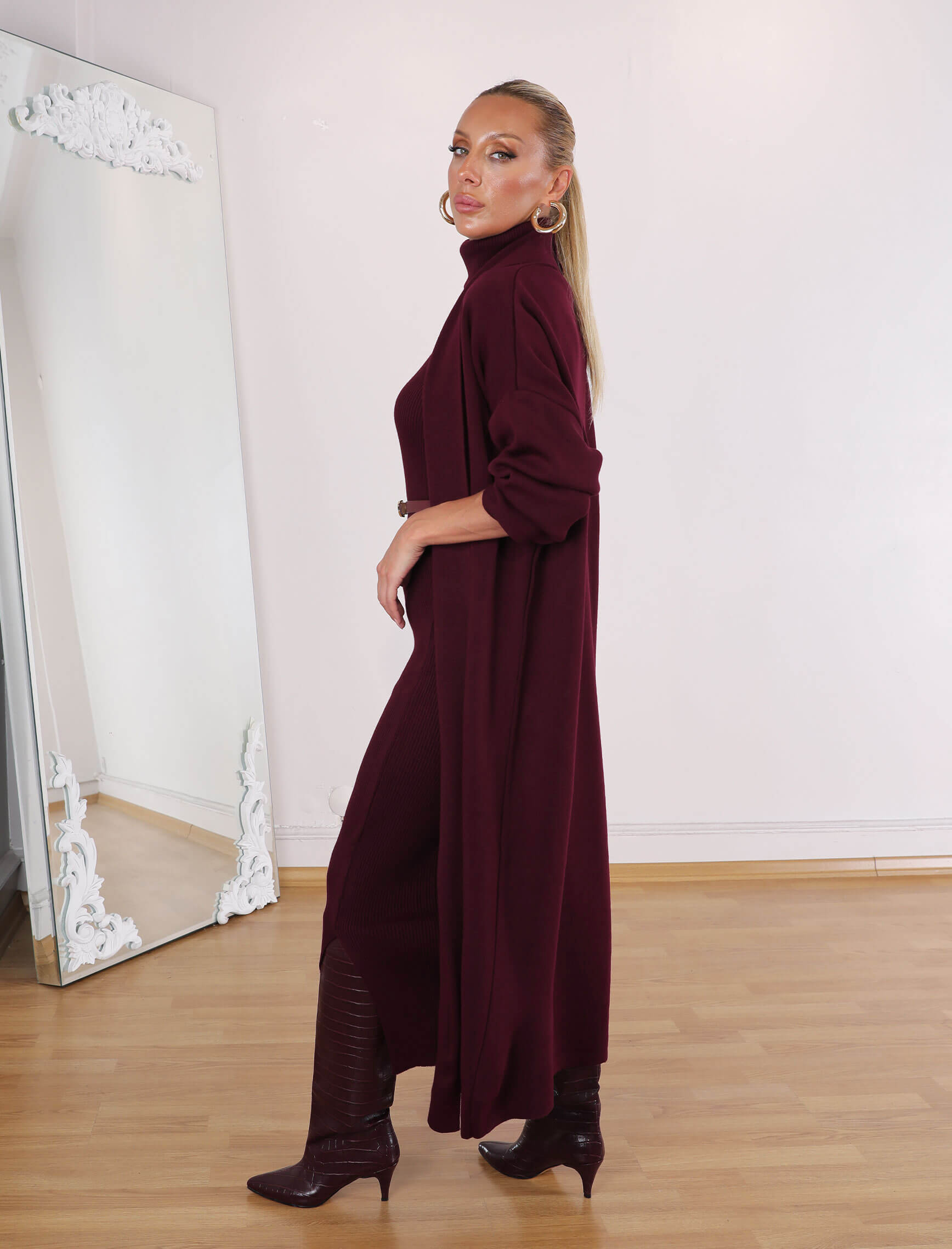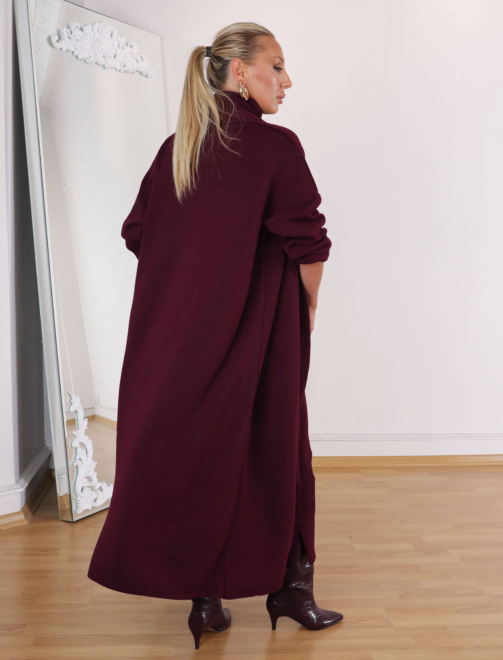 • Bordo Yuka Elbise-Hırka Takım