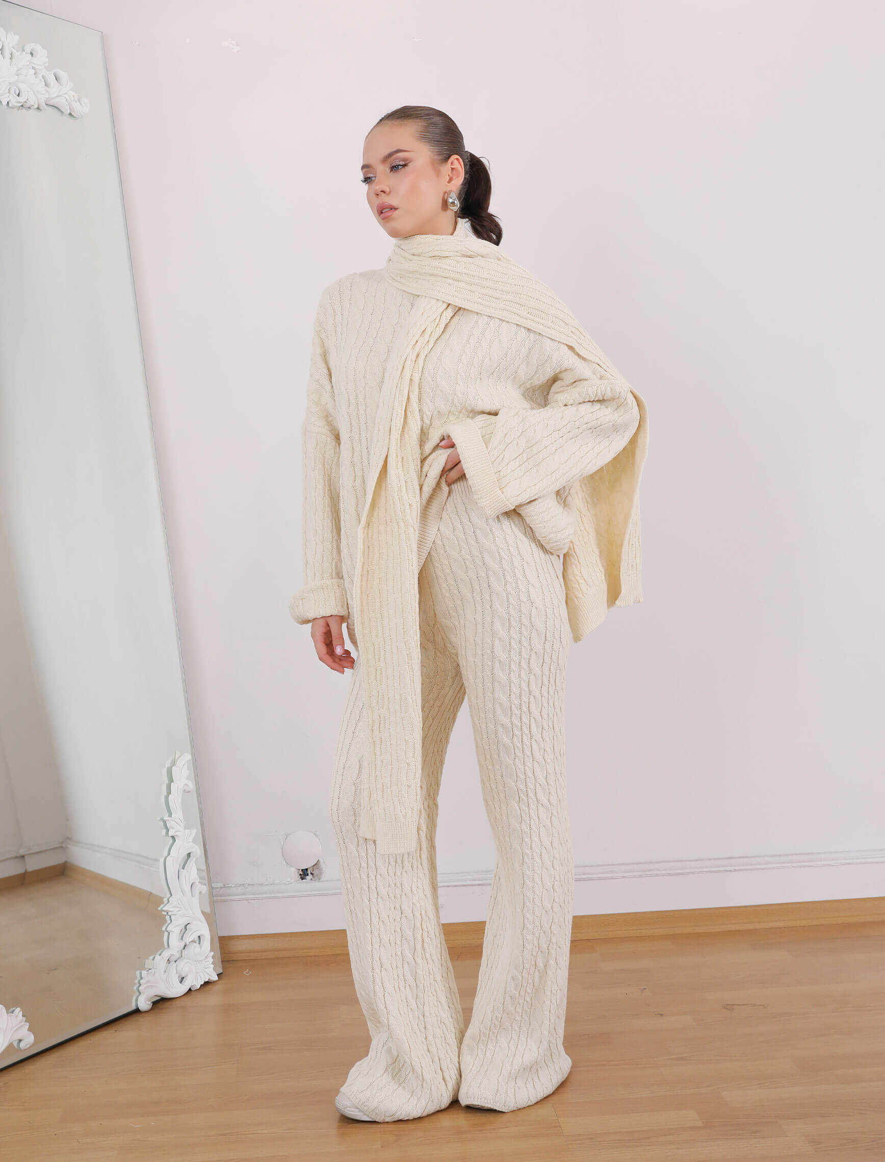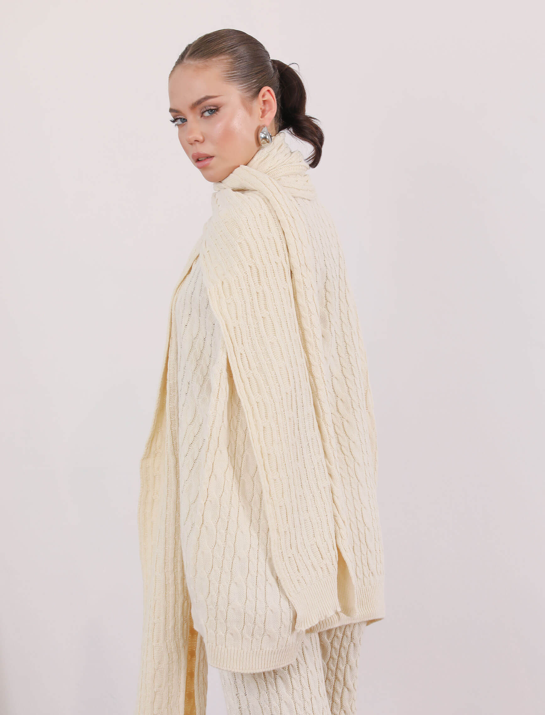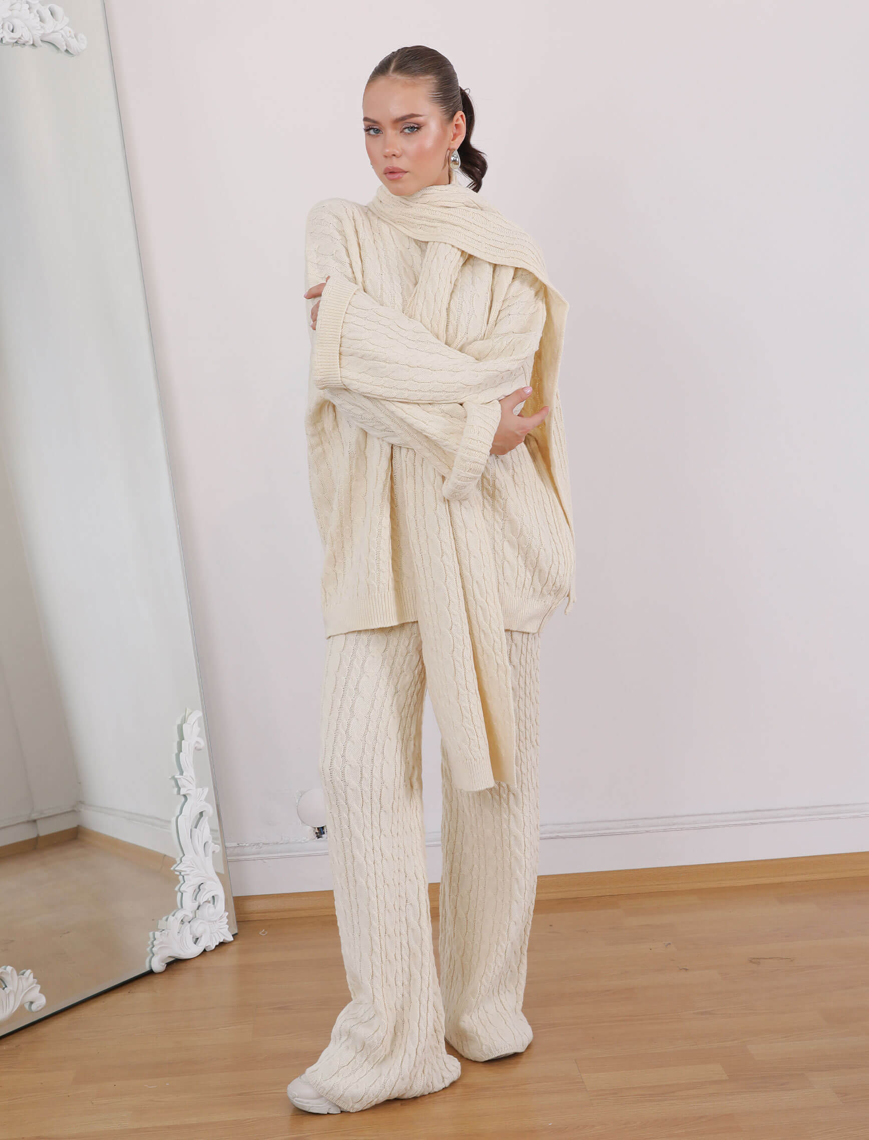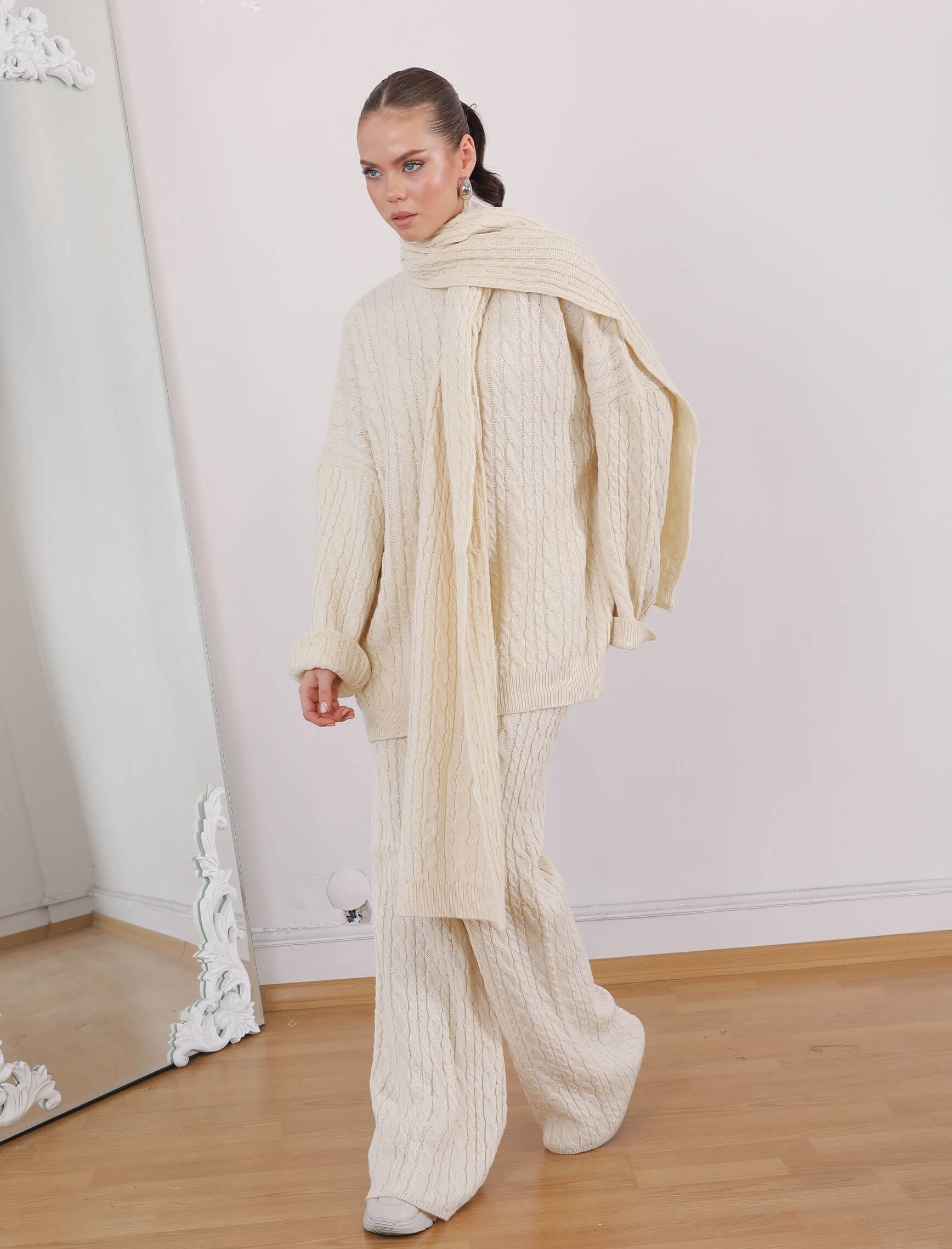Ekru Saç Örgü Atkılı Takım