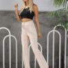 Ekru Siyah Saten Şerit Palazzo Pantolon