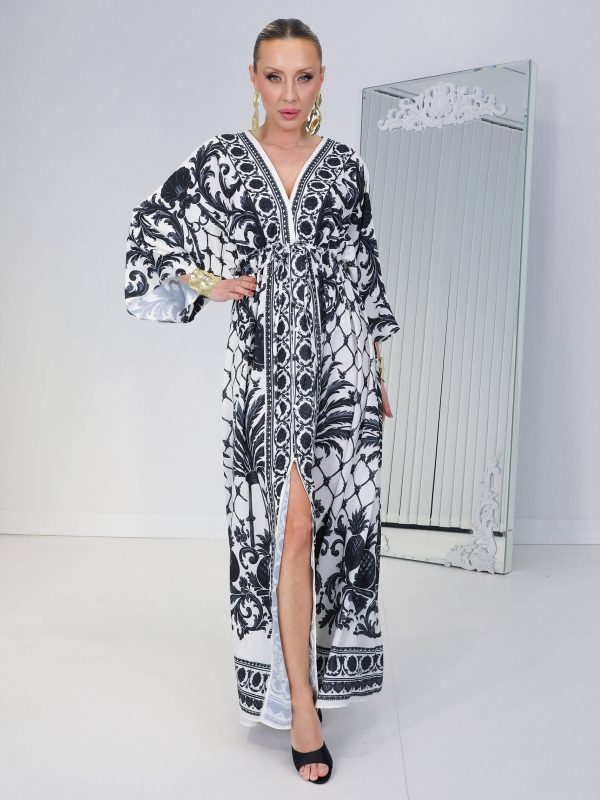 • Beyaz Siyah Palm Baroc Elbise