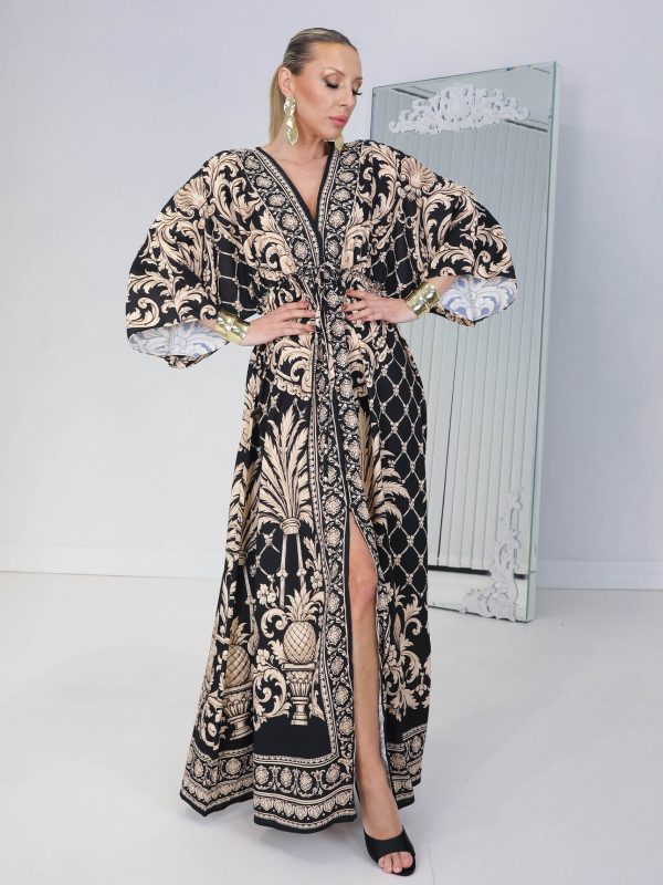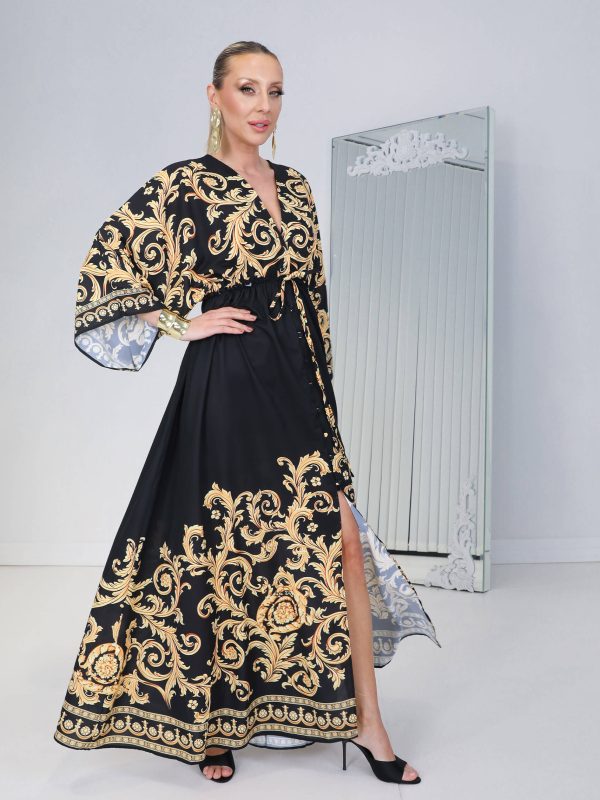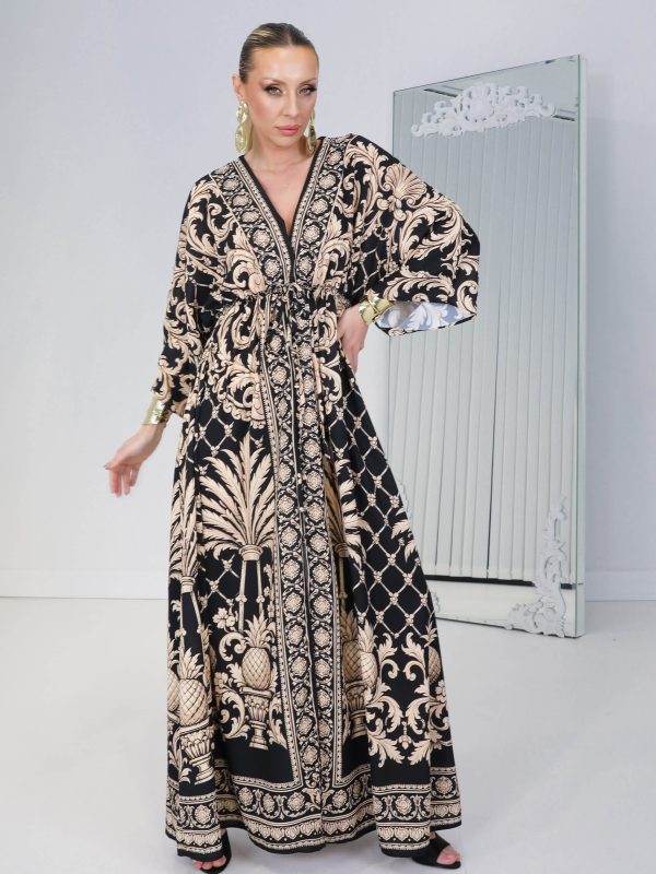 • Siyah Gold Palm Baroc Elbise