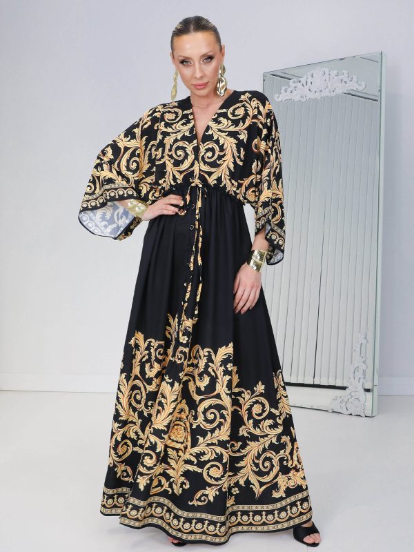 • Siyah Gold Damask Baroc Elbise