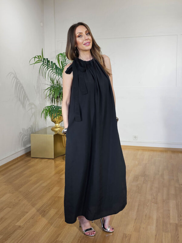 Siyah Boyun Bağlama Elbise
