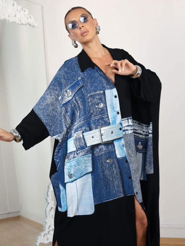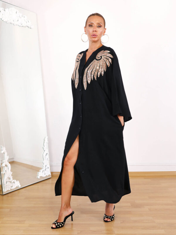 Siyah Gold Mühür Nakış Düğmeli Tunik