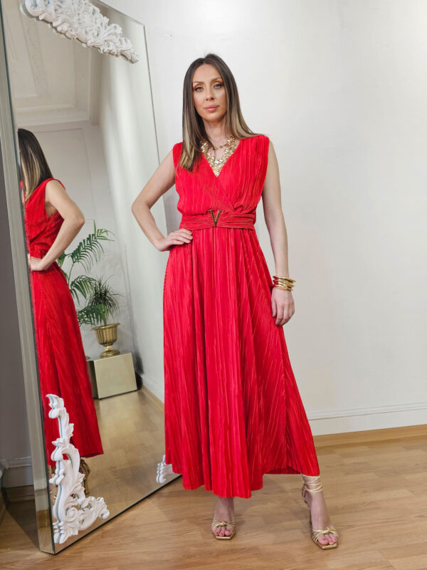 Kırmızı Pembe Santo Elbise
