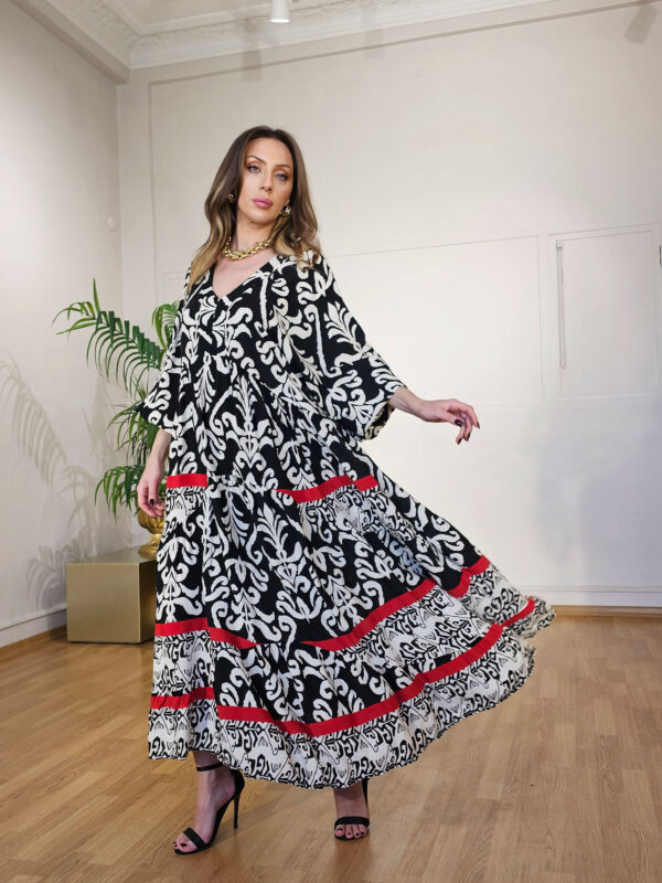 Siyah Kırmızı Desen Greta Elbise