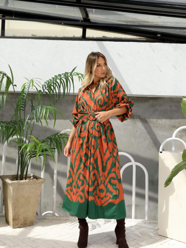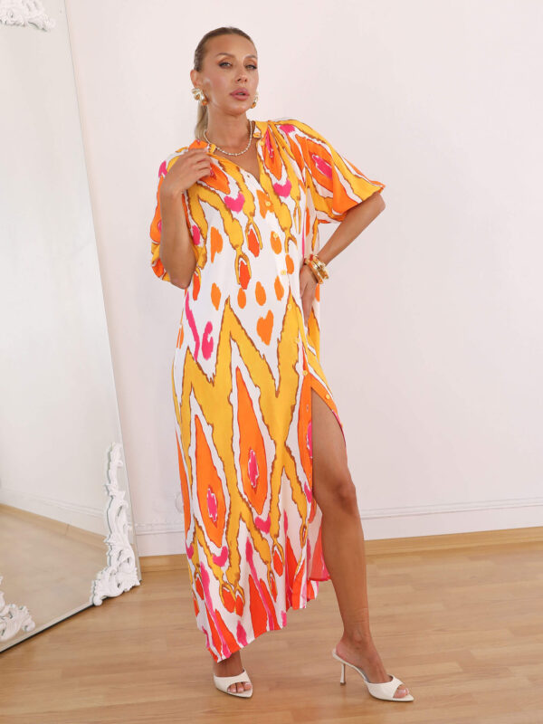 Siyah Turuncu Zebradesen Madonna Yaka Triko Elbise