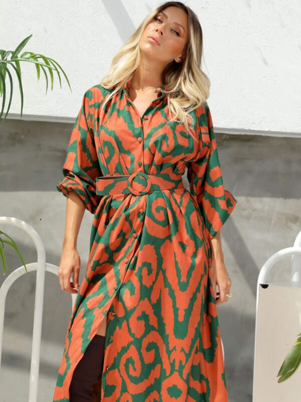 Mint V Polo Yaka Kuşaklı Triko Elbise