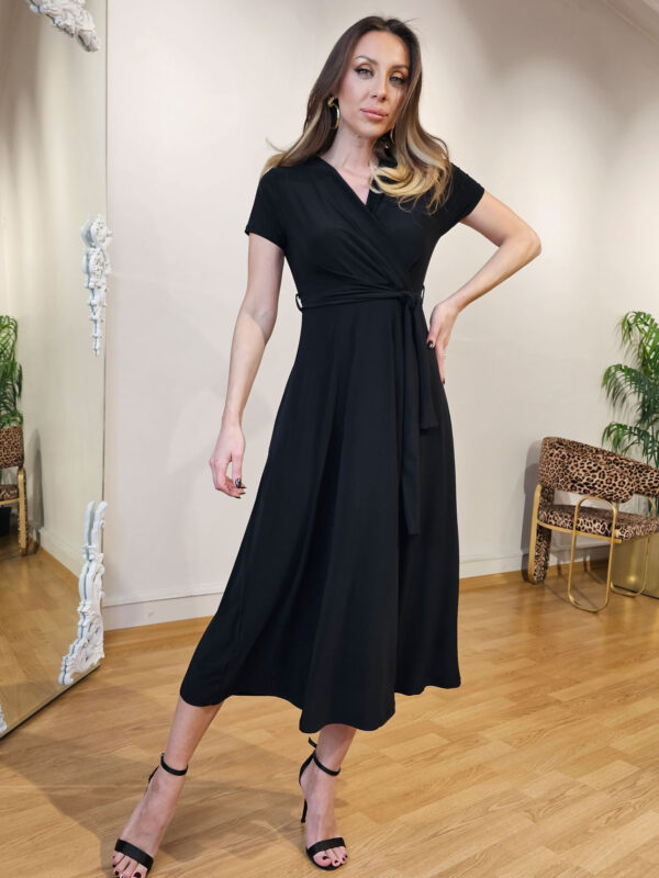 Siyah Güneş Toka Vatka Drapeli Elbise