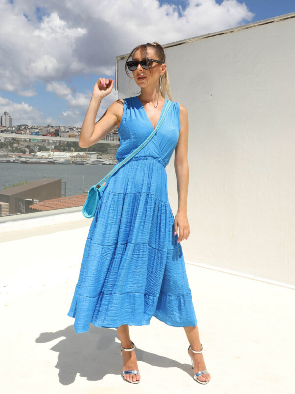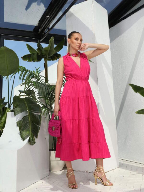 Fuşya Kolsuz Kruvaze Manolya Elbise