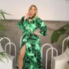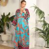Fuşya Turuncu Etnik Ebruli Desen Elbise