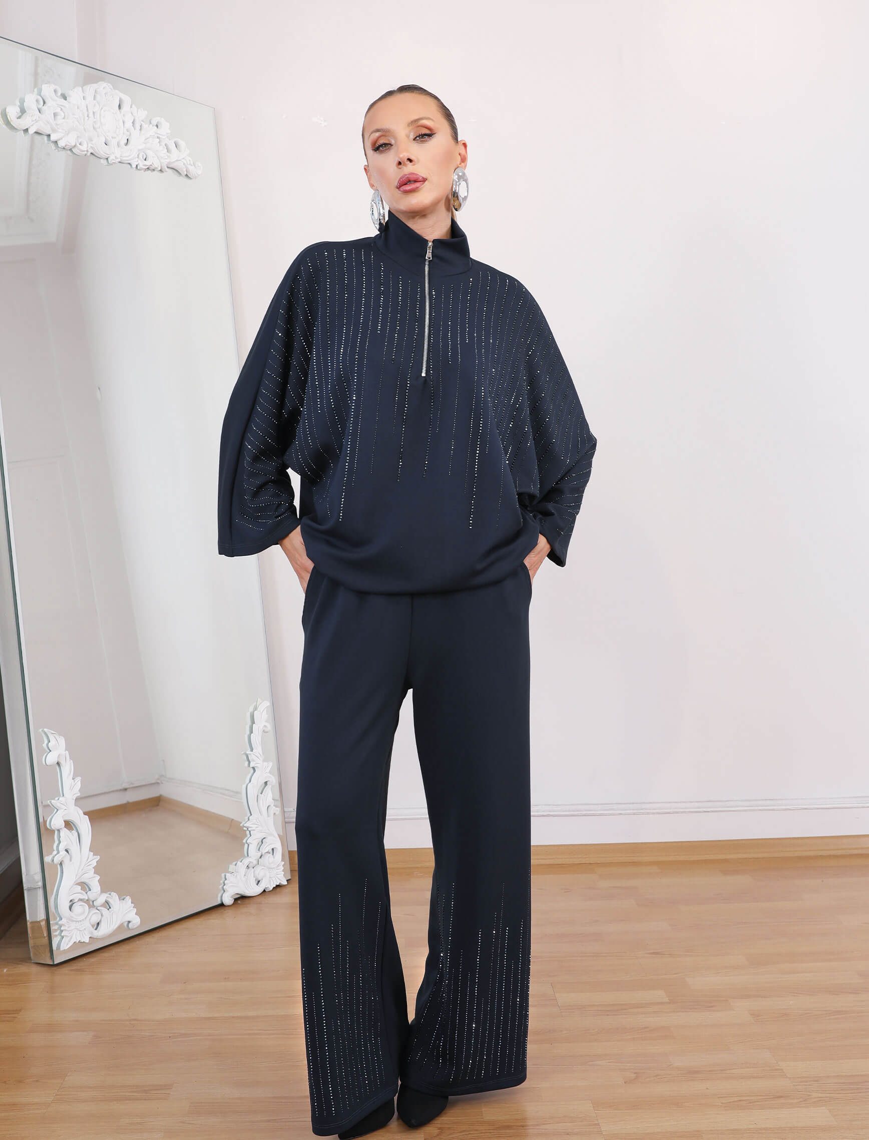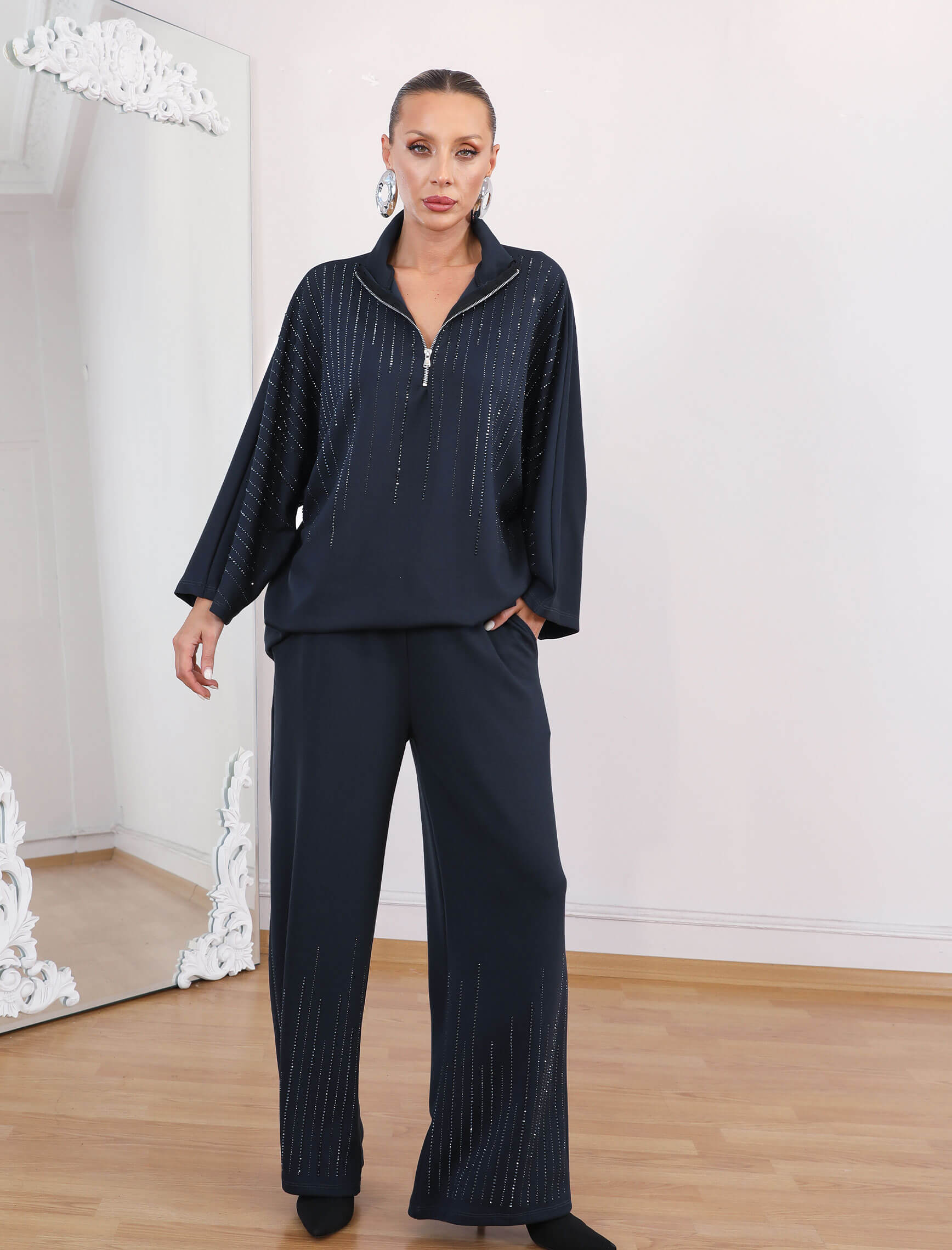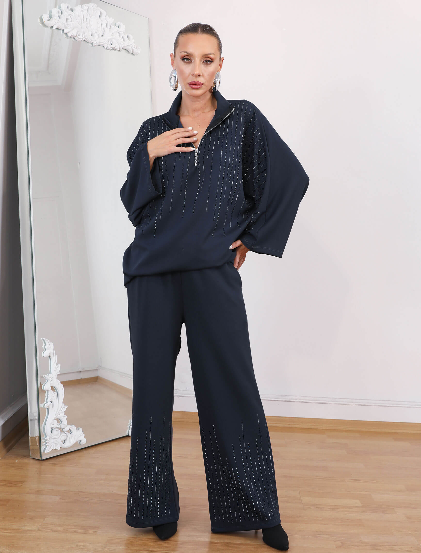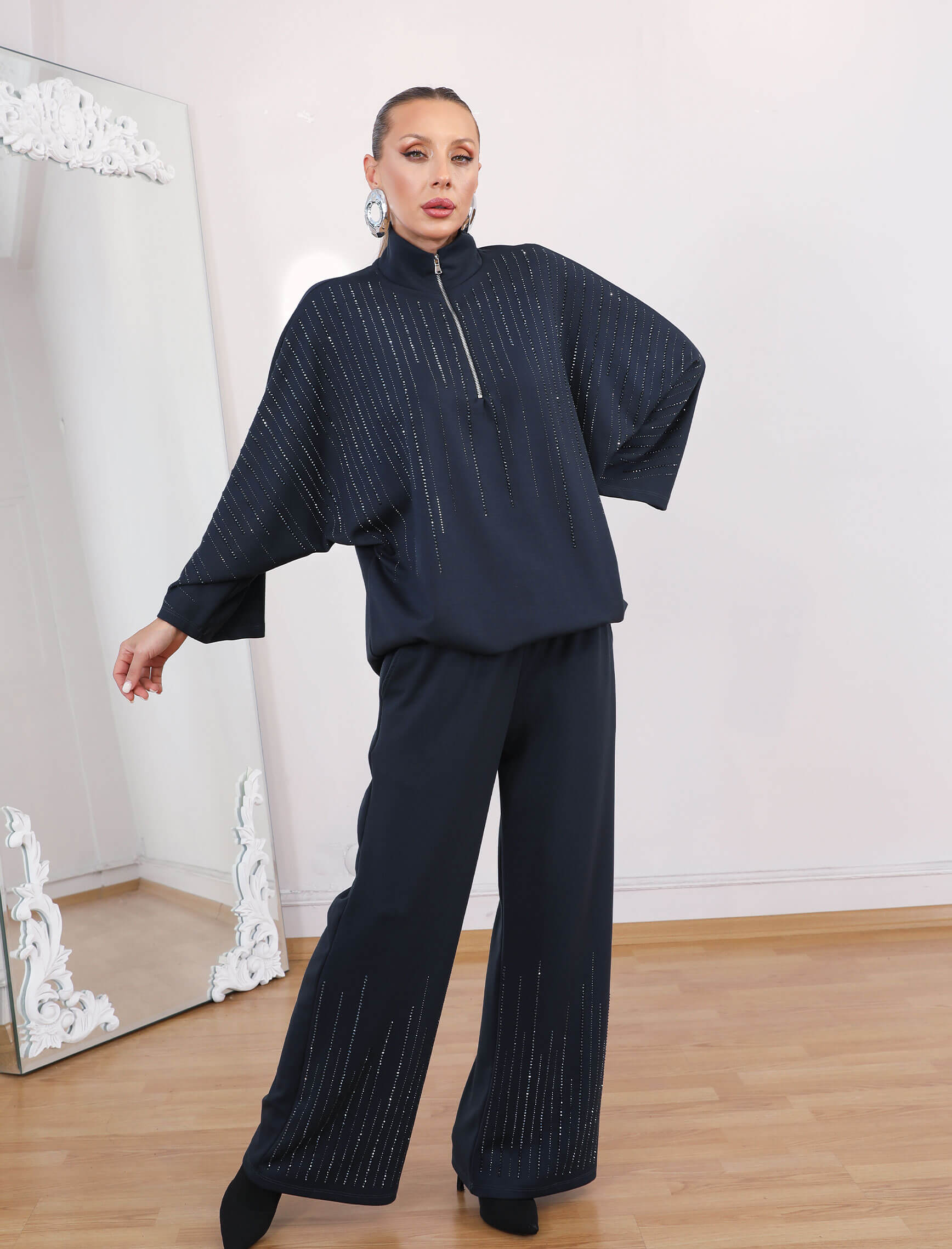 • Gece Mavisi Taşlı Glamore Takım