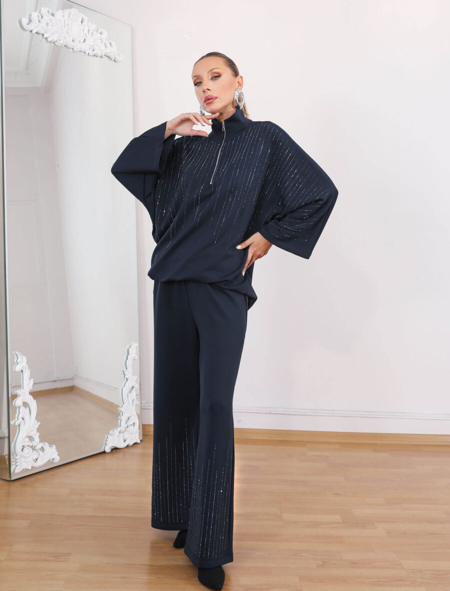 Gece Mavisi Taşlı Glamore Takım