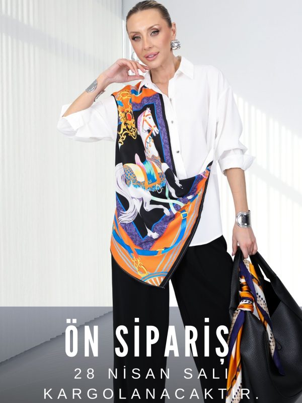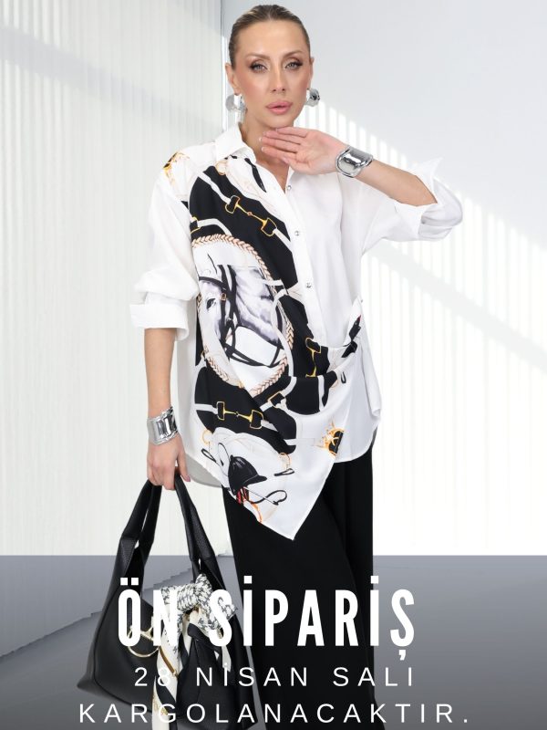 Beyaz Leopardesen Taşlı Arancia Gömlek