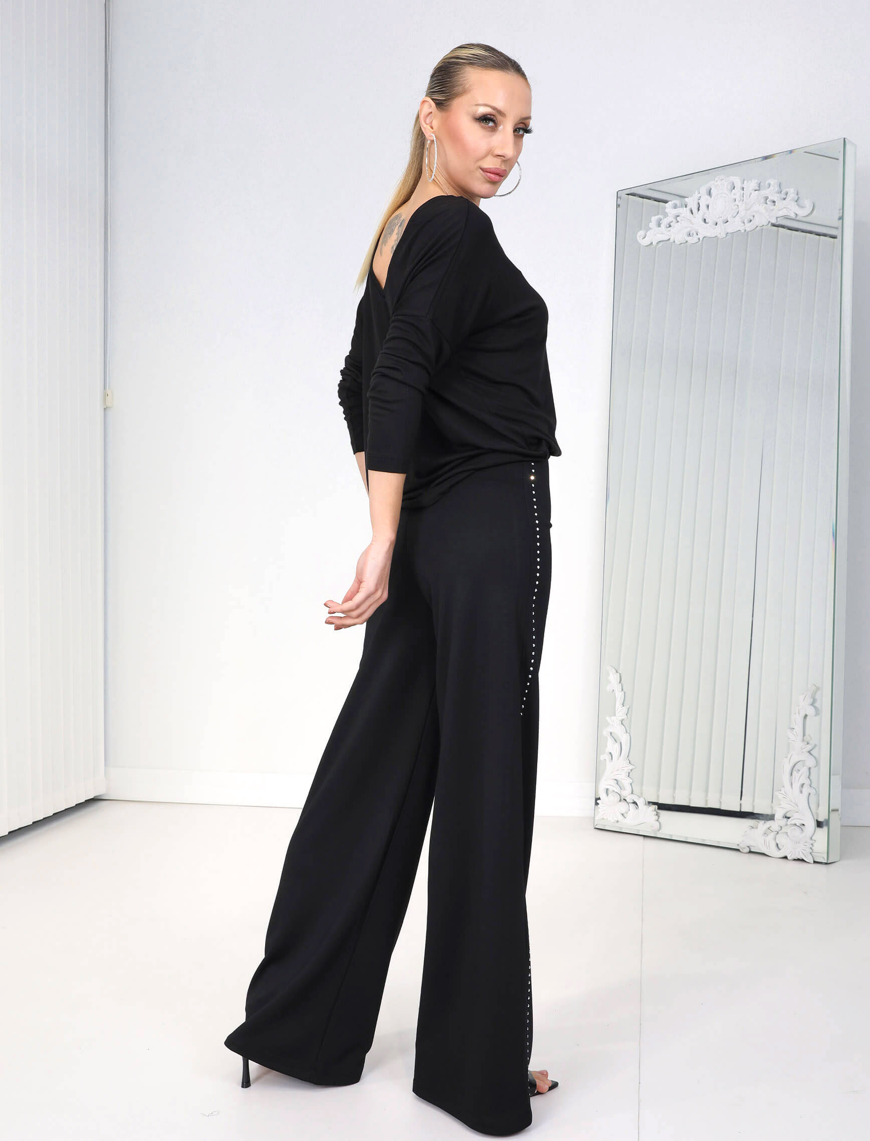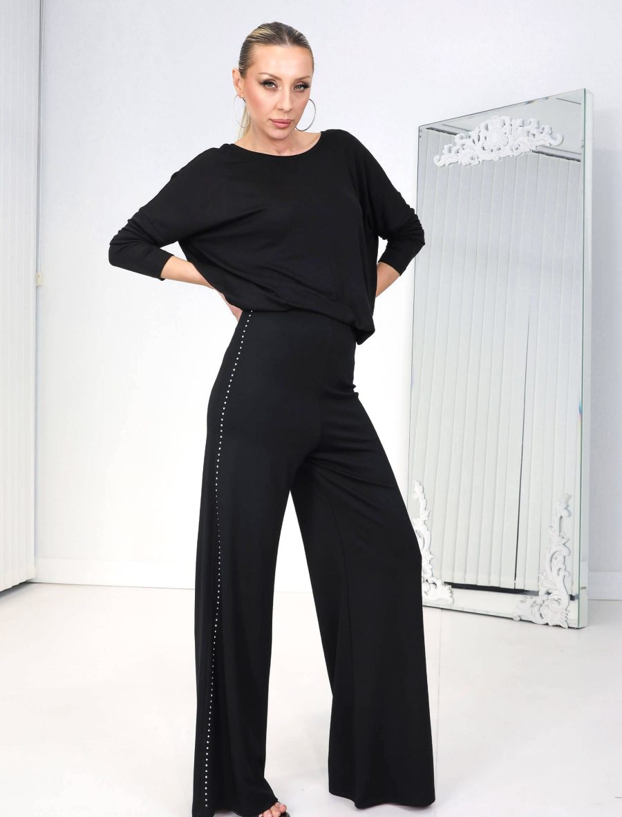 Gümüş Taş Tek Çizgi Bohem Palazzo Pantolon