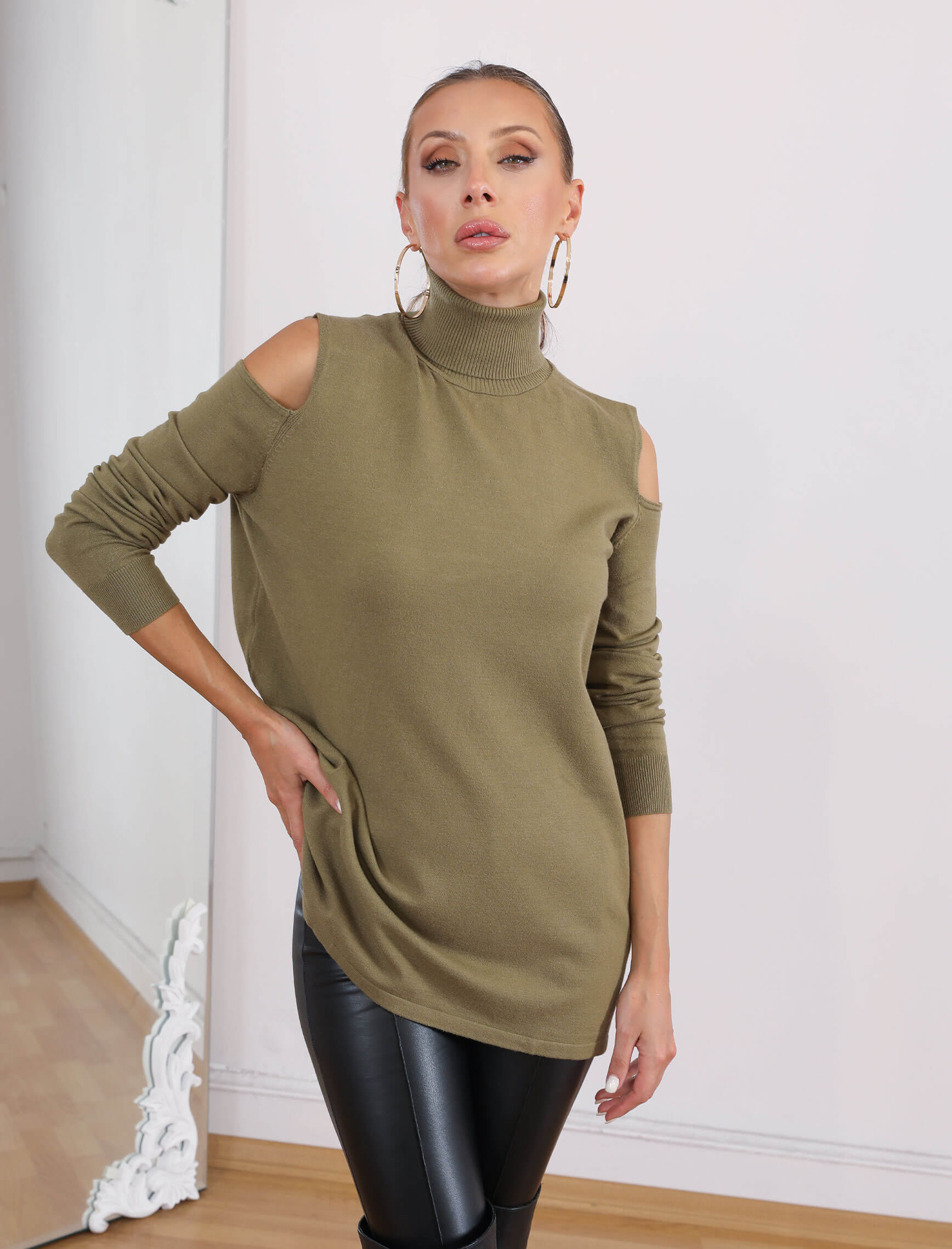 Haki Çift Omuz Dekolte Korspan Triko