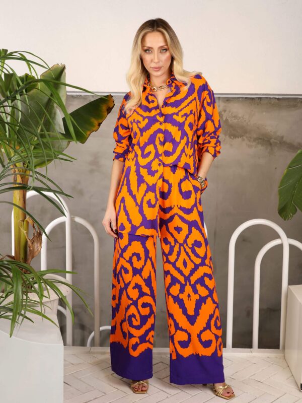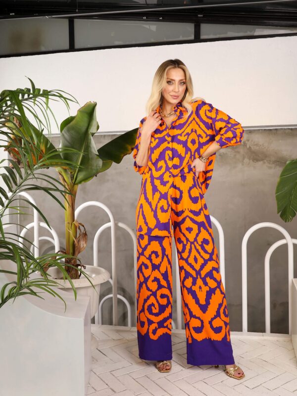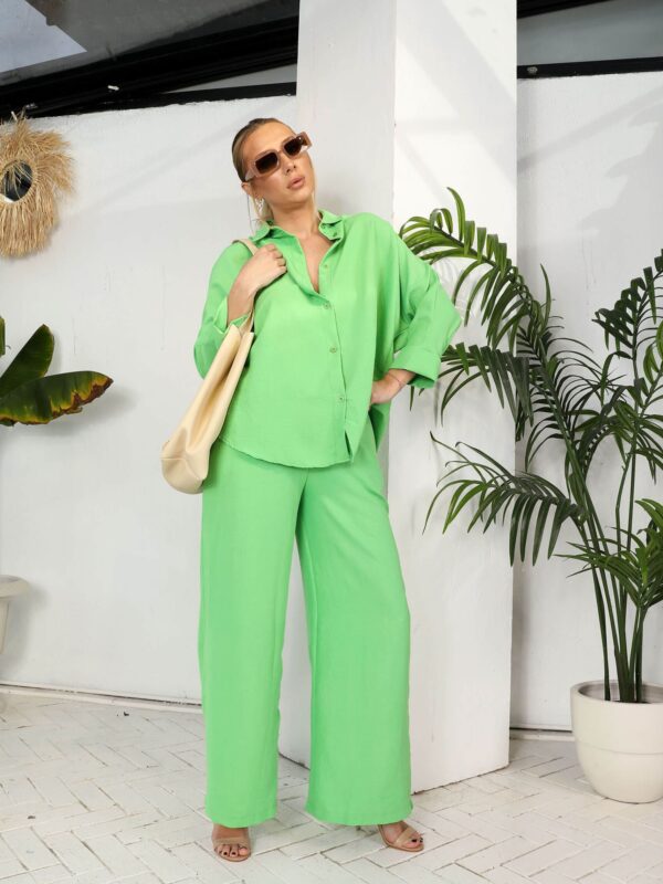 Mint Nar Batik Ortanca Pantolon Gömlek Takım