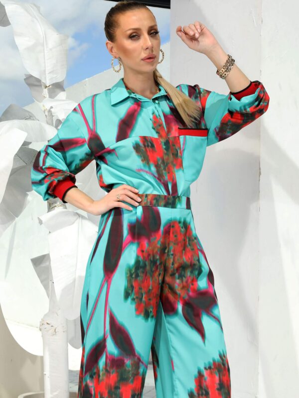 Mercan Mavi Batik Ortanca Pantolon Gömlek Takım