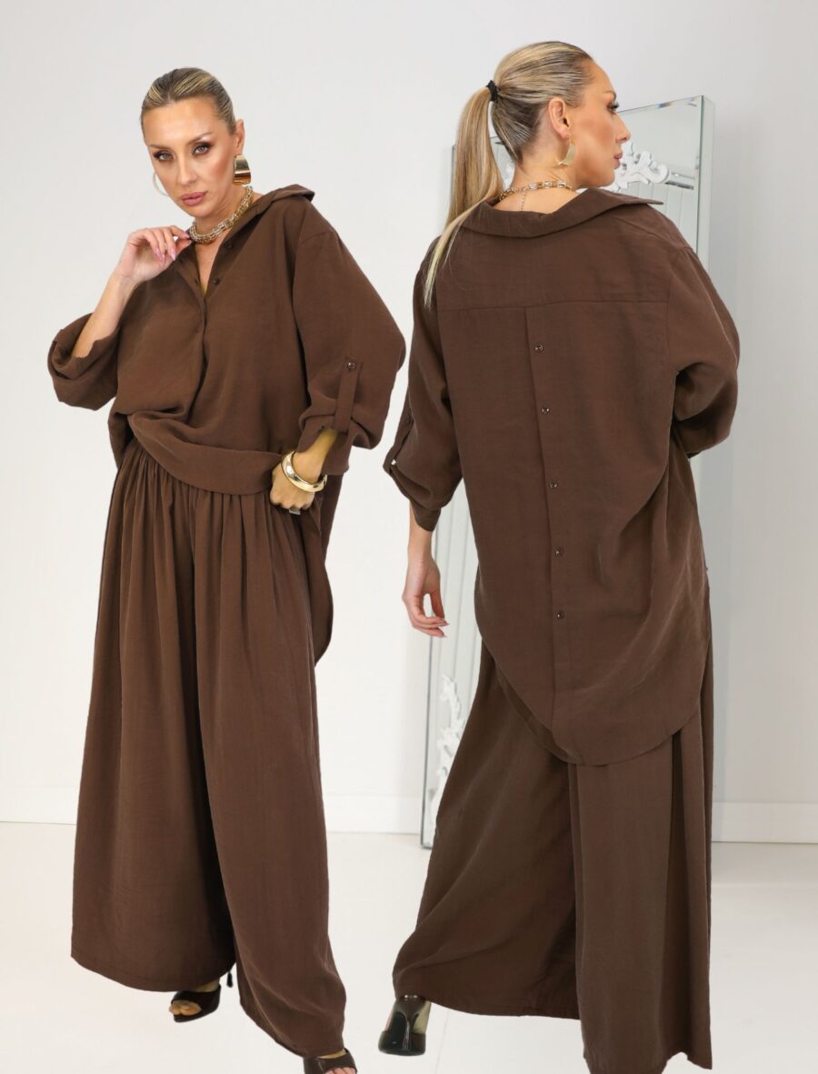 Kahve Sırt Düğme Tena Takım