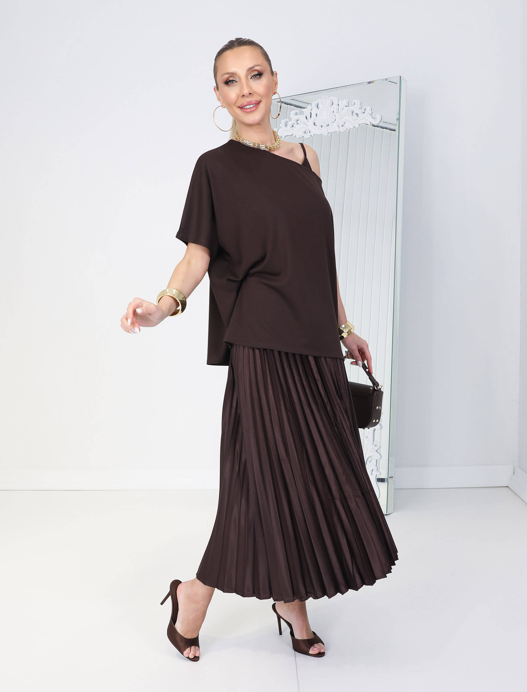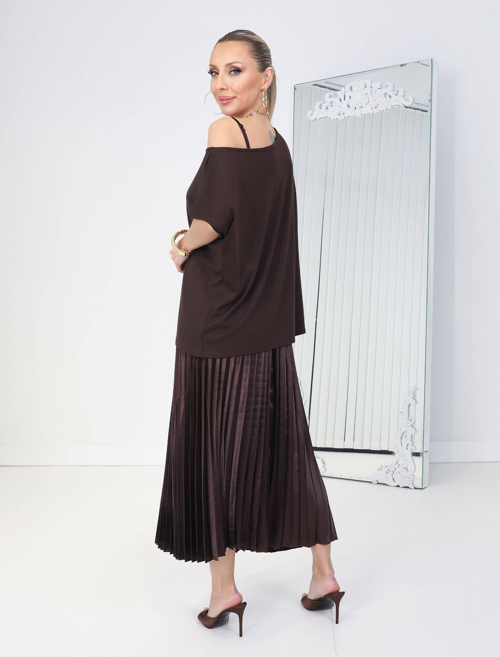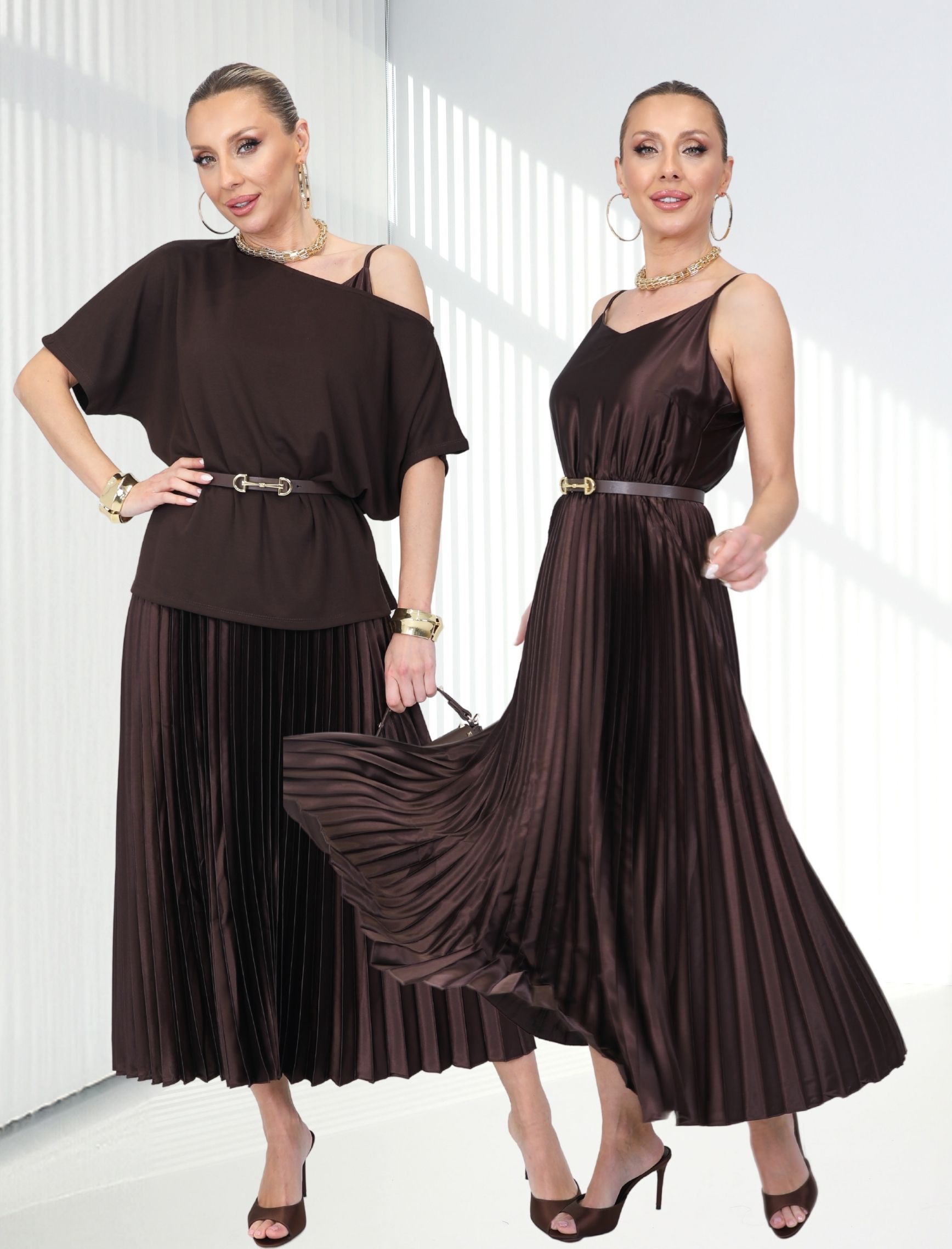 Kahverengi Carmen İkili Elbise