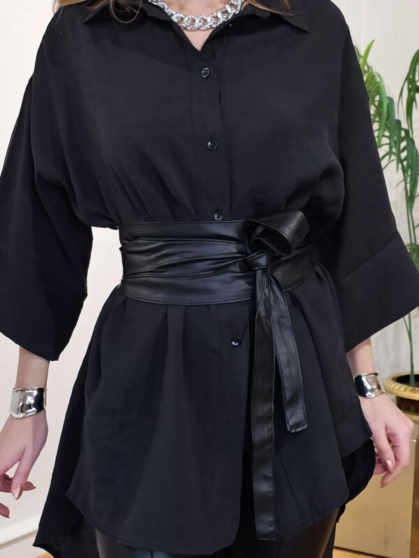 • Siyah Yumuşak Deri Bağlama Kemer