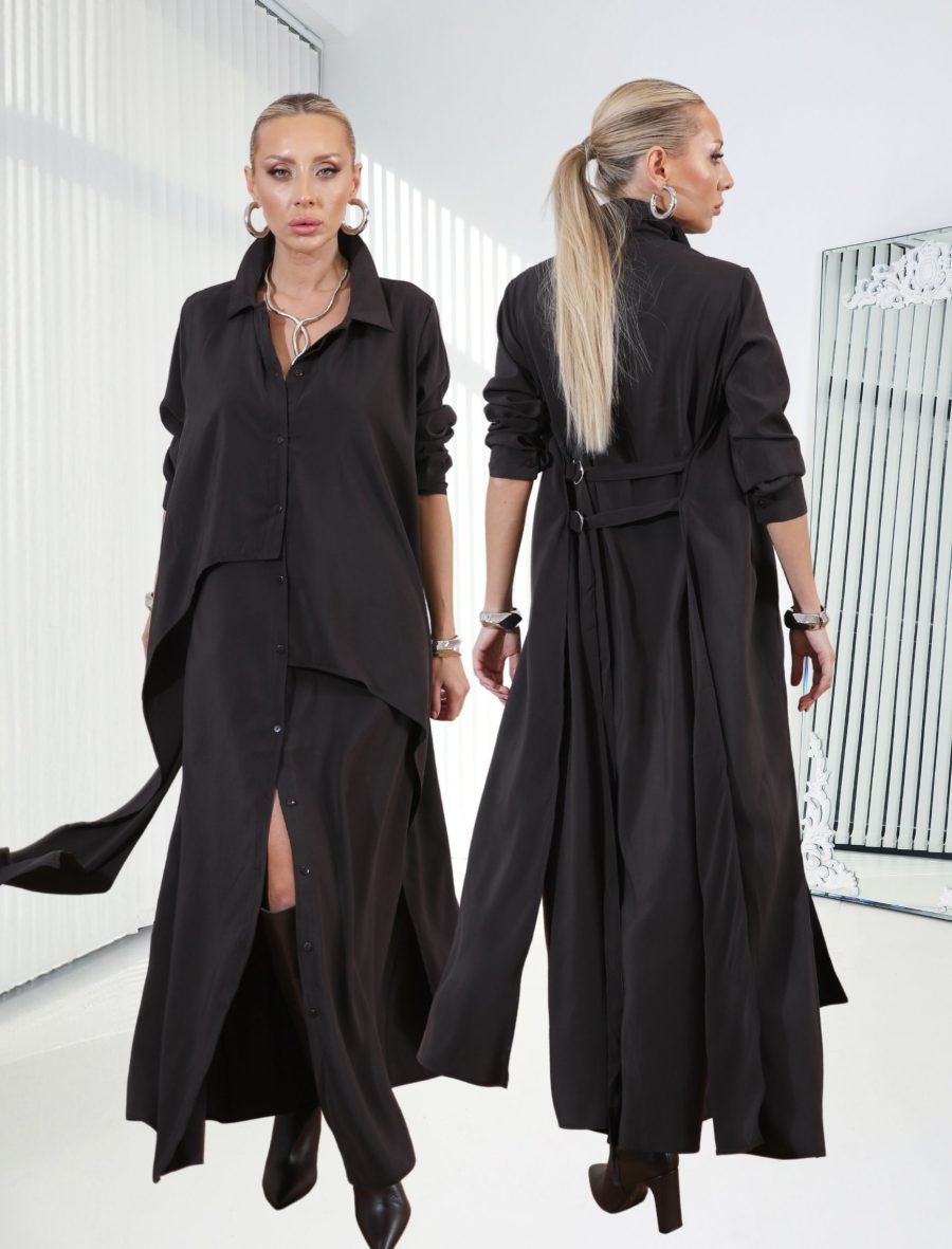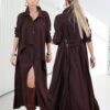 Koyu Kahverengi Vestido Gömlek Elbise