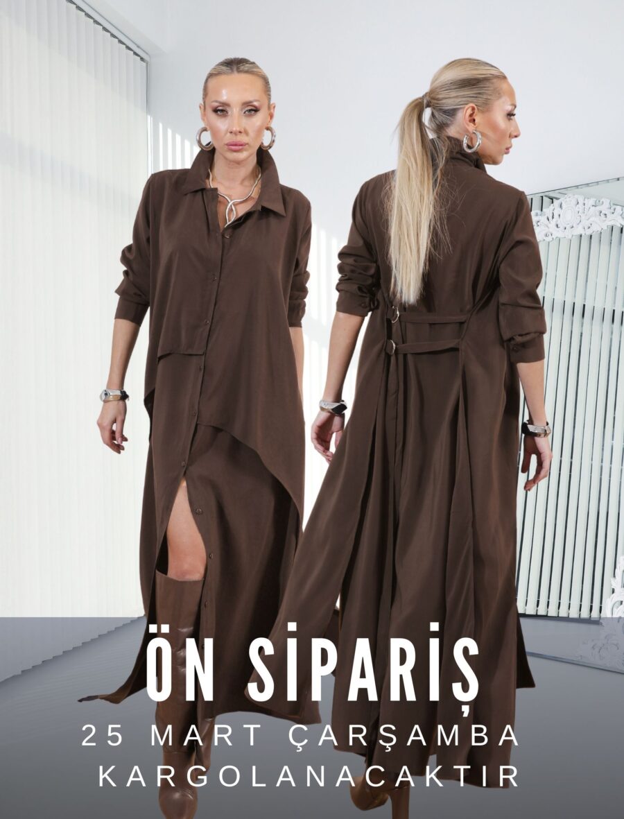 Kahverengi Vestido Gömlek Elbise
